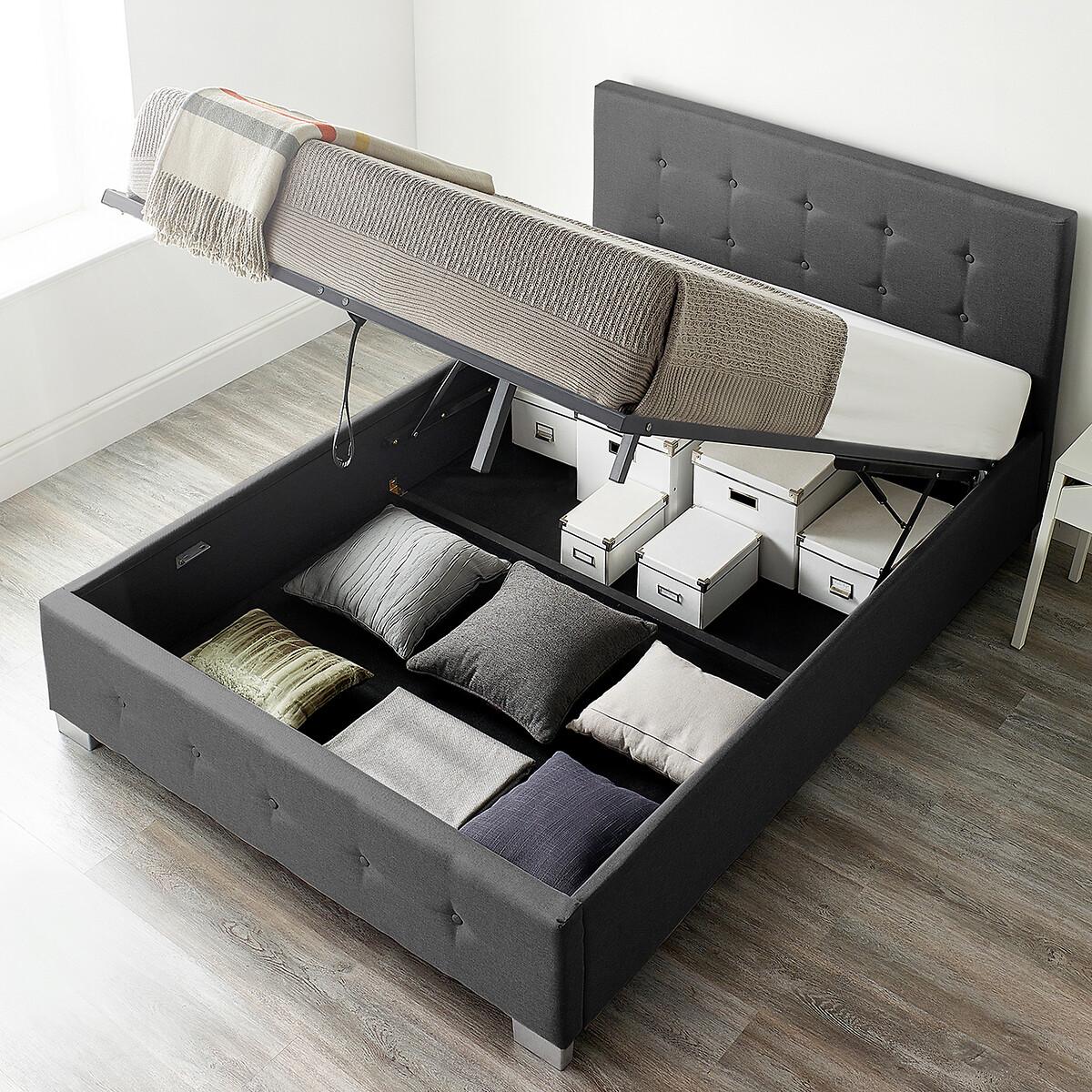 Please note: this product cannot be delivered to all Offshore Islands, Northern Ireland or Republic of Ireland. This product will be dispatched by one of our trusted suppliers. You’ll be contacted by their selected courier about your delivery. ASPIR01. Please note this item will be delivered to your doorstep. A stylish and practical ottoman storage bed in a quality linen fabric finish. The bed features a durable steel framework with quality, hard wearing 8 ply poplar sprung slats. The sprung slats increase comfort whilst also increasing mattress life span. Classic buttoned headboard with padding for added comfort when sitting up in bed. Matching buttoned footboard and attractive silver feet complete the design. Quality linen fabric with a slight texture, hard wearing and easy to clean. Featuring quality gas lift pistons, the large storage area can be easily accessed enabling a large variety of items to be tidily stored away. The base is covered with a black fabric cloth so stored items are not in contact with the floor. Suitable for use with all standard UK size mattresses. The bed meets all UK FR and safety standards and has also undergone extensive structural testing. Supplied flat pack for self-assembly, approximate build time of 60-90 minutes. Please note the maximum Mattress weight for this bed is 65kg. Swatch service: We offer a FREE swatch service. Please email samples@aspire-furniture.co.uk and include the below information:Please include 'La Redoute' in the title of your email. Name and address:Product: Essentials Ottoman Bed. Fabric: Linen. Colour: (in order to receive the correct colour please use the table below to identify correct reference)Your swatches will be delivered within 10 working days (subject to availability)Colour Description Colour to RequestBeige Beige LinenBlack Black LinenGrey Grey Linen Product Dimensions:Single: 96.5cmx102cmx205cm. Small Double:96.5cmx132cmx205cmDouble:96.5cmx149cmx205cmKing:96.5cmx162cmx215cm Super King:96.5cmx192cmx215cm. Please remember to measure your available space before ordering. Single:Parcel 1 Packaged Dimensions 198cmx 32cmx 18cm Weight: 12kg Parcel 2 Packaged Dimensions 107cmx 96cmx 9cm Weight: 12kg Parcel 3 Packaged Dimensions 188cmx 24cmx 11cm Weight: 13kg. Small Double:Parcel 1 Packaged Dimensions 198cmx 32cmx 18cm Weight: 14kg Parcel 2 Packaged Dimensions 137cmx 96cmx 9cm Weight: 13kg Parcel 3 Packaged Dimensions 188cmx 24cmx 11cm Weight: 13kgDouble: Parcel 1 Packaged Dimensions 198cmx 32cmx 18 14 Weight: 14kg Parcel 2 Packaged Dimensions 154cmx 96cmx 9 14 Weight: 14kg Parcel 3 Packaged Dimensions 188cmx 24cmx 11 15 Weight: 15kgKing: Parcel 1 Packaged Dimensions 208cmx 32cmx 18 17 Weight: kg Parcel 2 Packaged Dimensions 167cmx 96cmx 9 15 Weight: kg Parcel 3 Packaged Dimensions 198cmx 24cmx 11 22 Weight:kg Super King:Parcel 1 Packaged Dimensions 208cmx 32cmx 18cm Weight: 21kg Parcel 2 Packaged Dimensions 207cmx 96cmx 9cm Weight: 19kg Parcel 3 Packaged Dimensions 198cmx 24cmx 11cm Weight: 24kg. Upholstered Fabric Composition: Linen fabric
