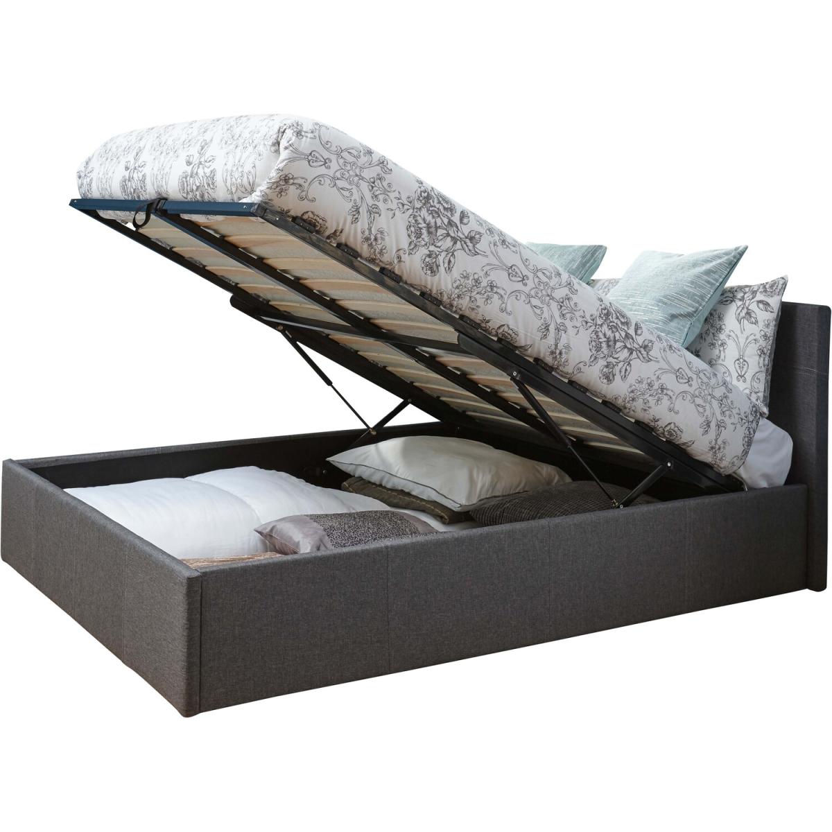 This stunning end lift ottoman bed offers an attractive combination of contemporary style and ample storage space. This beautifully crafted frame is finished in high-quality faux leather and complemented by a simple yet stylish stitched headboard. This is an ideal solution if space is at a premium in your bedroom as the ottoman base provides generous storage space for linen, blankets, towels or clothes. The base lifts easily with the help of a gas hydraulic system so you can access the lined storage area underneath the bed.