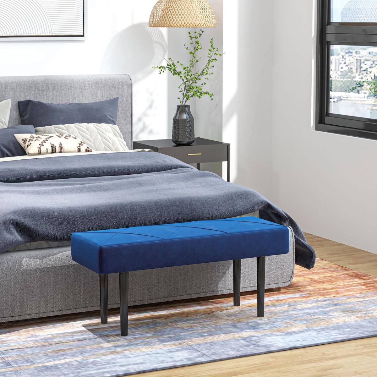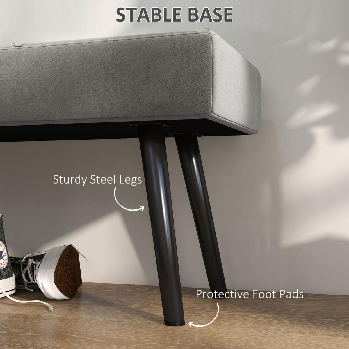 A touch of elegance for the spot you chose this velvet-feel bed-end bench from HOMCOM. A thickly padded top makes it comfortable to sit on, the upholstery is smooth on skin. Powder coated steel legs for strong support, with foot pads gently protecting your floor. A long length gives plenty of room to and relax.