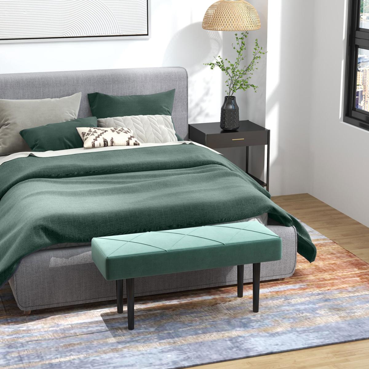 End of Bed Bench with X-Shape Design and Steel Legs - Green