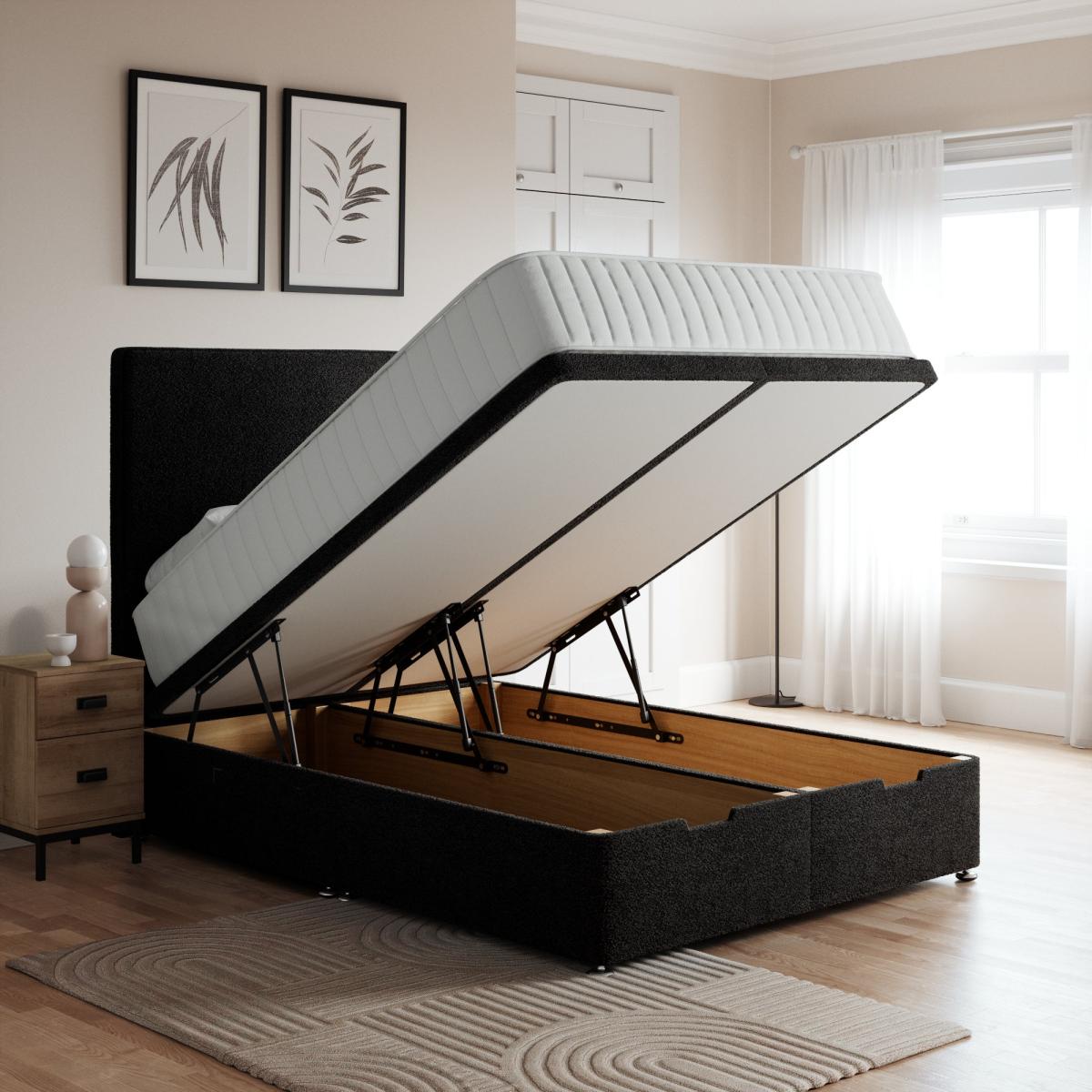* High quality timber construction* Suitable for any headboard type* Space saving underbed storage* Choice of fabric colours* Made in the UK* **Please note**: Headboard is not included. Constructed from high quality timber, this ottoman divan bed base provides excellent support for all types of mattresses. Upholstered in a range of high quality fabric colours, you can be sure you can find one to coordinate with your bedroom. This divan base is the ultimate style and storage solution for any bedroom. Please note: The headboard and mattress are not included.