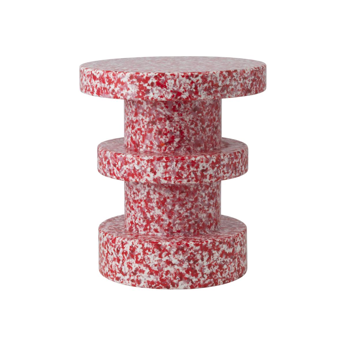 The Bit stool proves it’s possible to give waste a second life to create a new object that’s beautiful, useful and durable. This plastic stool is made from recycled industrial and household waste. The pixellated surface is made up of a multitude of tiny little pieces of plastic. Cheerful and subtly coloured, this plastic material presents irregular speckled patterns that give it a mineral aspect, reminiscent of terrazzo or granite. Each Bit stool is unique, their colour and patterns varying slightly from piece to piece. Highly sculptural, the Bit stool comes in different complementary shapes inspired by Greek columns and Roman architecture. The rough appearance of the solid lines contrasts nicely with the delicacy of the pixellated pattern made up of a multitude of coloured plastic glitter pieces. The Bit stool is available in captivating colour combinations. Bit is multifunctional: stool, small side table, bedside table or pedestal to display a flower arrangement or lamp... Bit adds personality to any decor. Add panache to a store window, lobby or hotel room, invite Bit into your home to brighten up your living room or children's room.