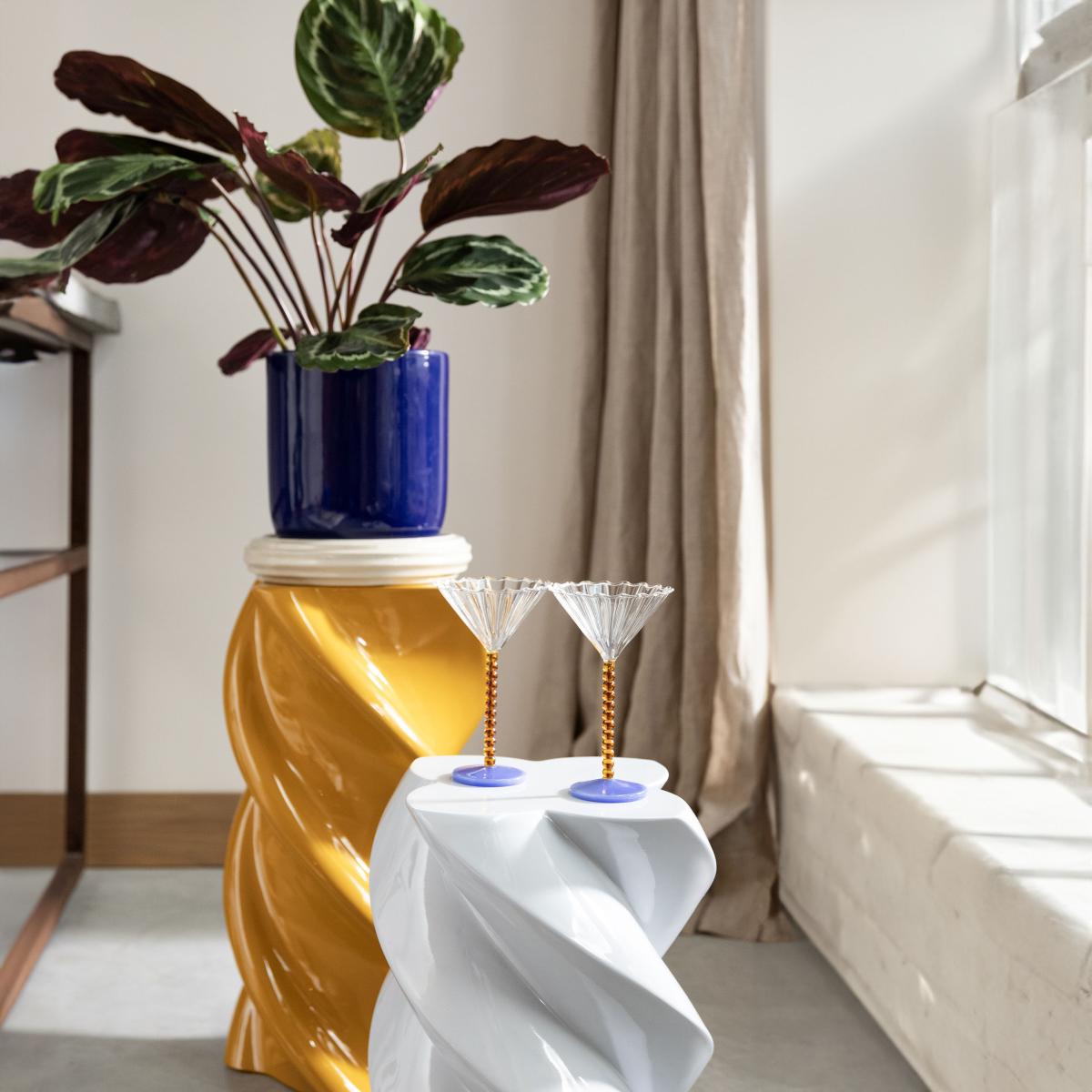 Extravagant and bursting with energy, the Marshmallow side tables feature astonishing shapes, twisted up just like marshmallows. These fibreglass columns come in vibrant colourways that are sure to boost the dynamics of your interior. The smooth, soft-touch fabric has a high-shine finish that's easy on both the eye and the hand. These columns are perfect for displaying a little lamp or a plant anywhere in the home. The various side tables in the Marshmallow collection can be combined to form a stylistic set.