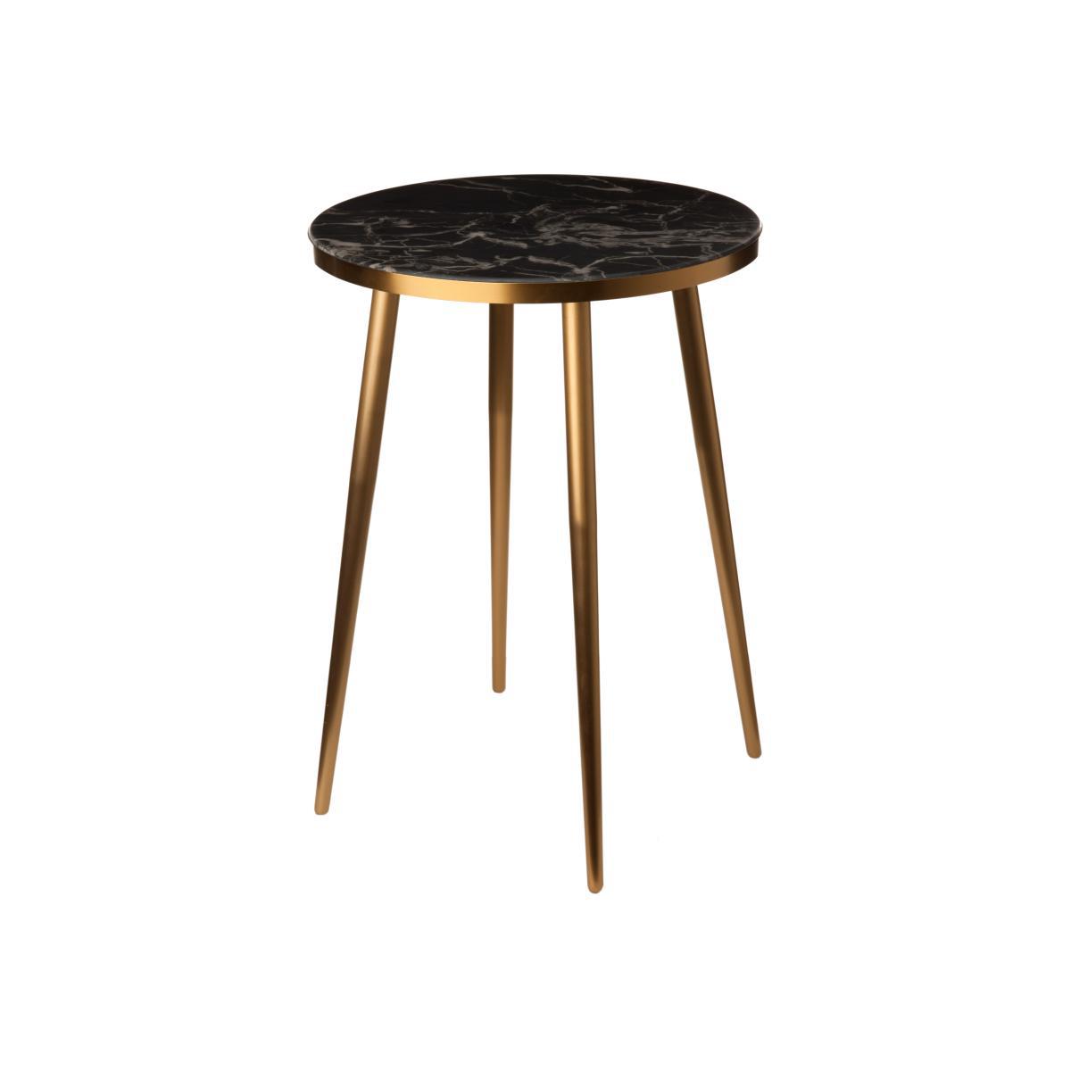 A chic and sophisticated style for this side table inspired by the Art Deco movement. Enhance your interior by focusing on the naturally noble, graphic and timeless character of marble. The resin top perfectly imitates marble with its delicate veins. An impressive trompe l’œil effect that lets you look after and move this table more easily. Very chic, the golden metal structure reinforces the sophisticated dimension of this piece. Thanks to its refined aesthetics and its timelessness, this side table fits in nicely with very modern as well as more classic interiors, near the sofa or as a bedside table.
