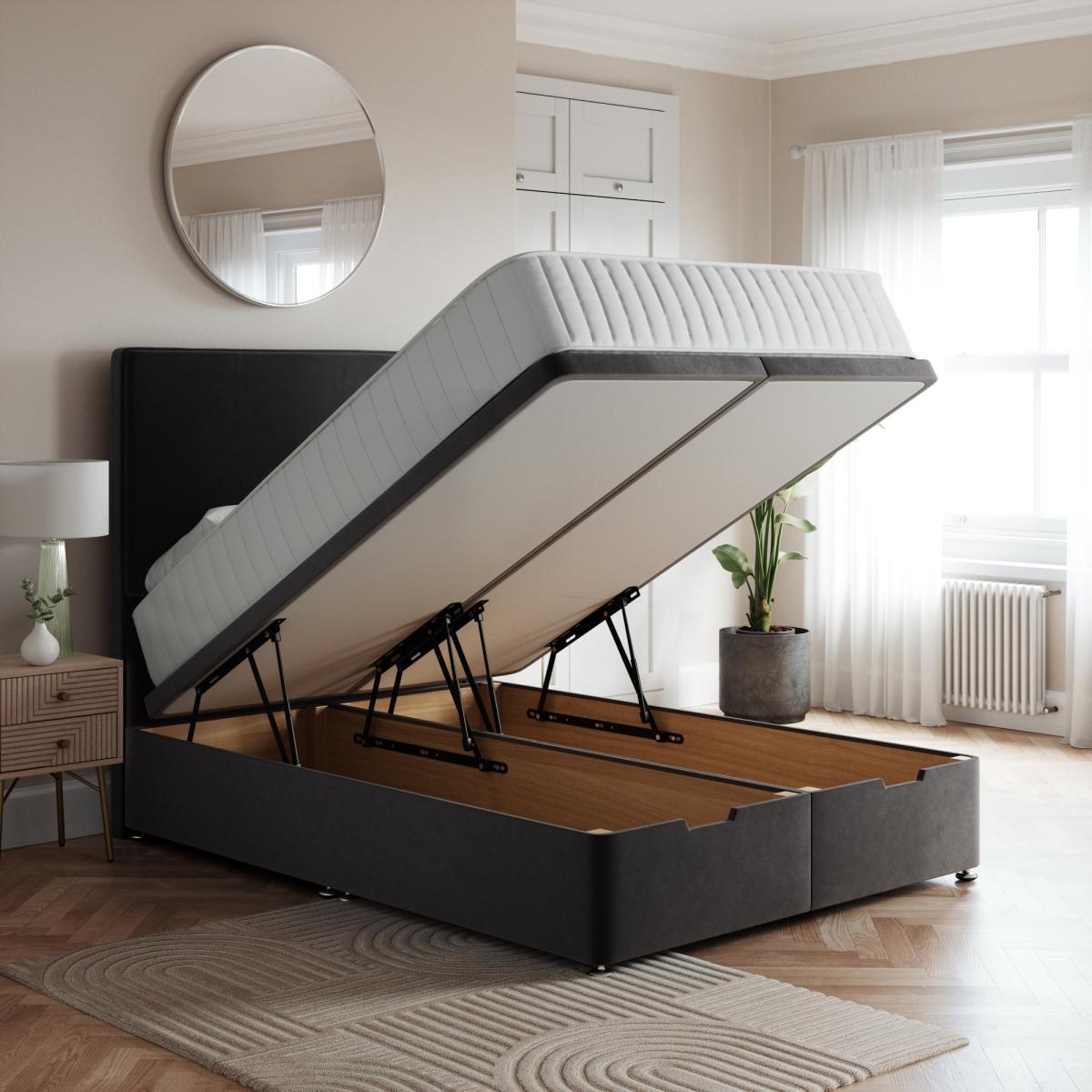 * High quality timber construction* Suitable for any headboard type* Space saving underbed storage* Choice of fabric colours* Made in the UK* **Please note**: Headboard is not included. Constructed from high quality timber, this ottoman divan bed base provides excellent support for all types of mattresses. Upholstered in a range of high quality fabric colours, you can be sure you can find one to coordinate with your bedroom. This divan base is the ultimate style and storage solution for any bedroom. Please note: The headboard and mattress are not included.
