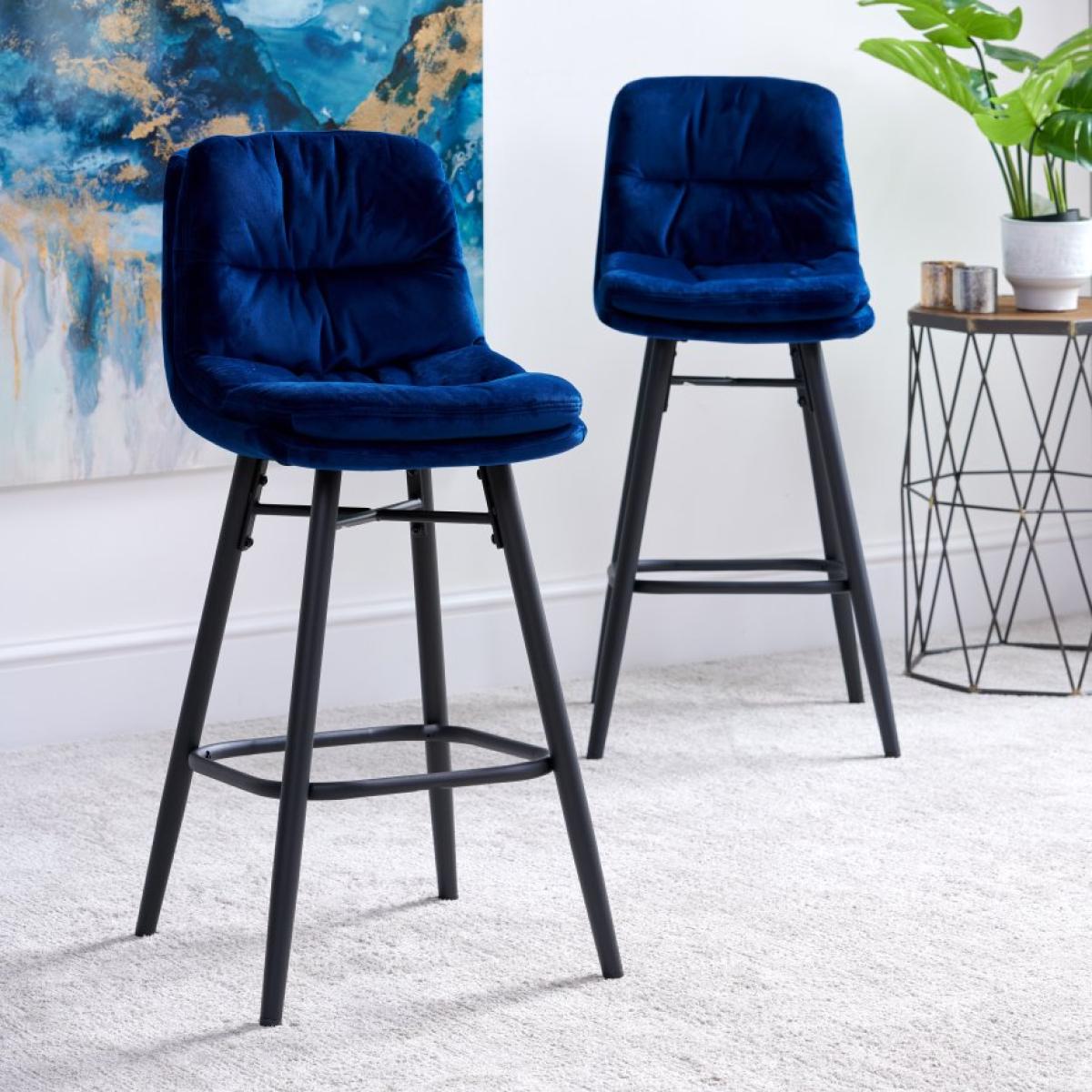 The Enderson barstool is a fully upholstered extremely comfortable bar stool. Swathed in velvet with generous padding for great support. The sturdy black metal legs include a foot rest and these stools come as a pair. The style is versatile and would suit many a breakfast bar. Also available in Orange, Light Grey and Dark Grey. *Upholstered in velvet *Black Metal Legs with Footrest *Modern Design *Dimensions W43 x D52 x H98.5 *Simple Self Assembly