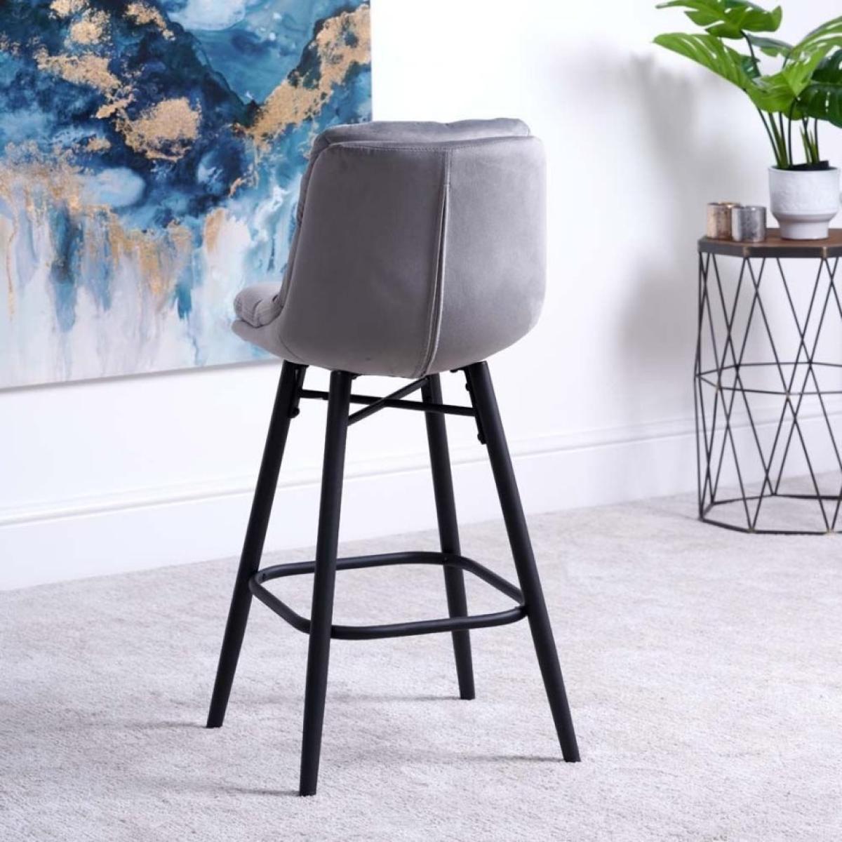 The Enderson barstool is upholstered in a lovely soft velvet with generous padding for supreme comfort. Supported by black metal legs with a foot rest, these stools come as a pair, and will suit a breakfast bar in so many home styles.