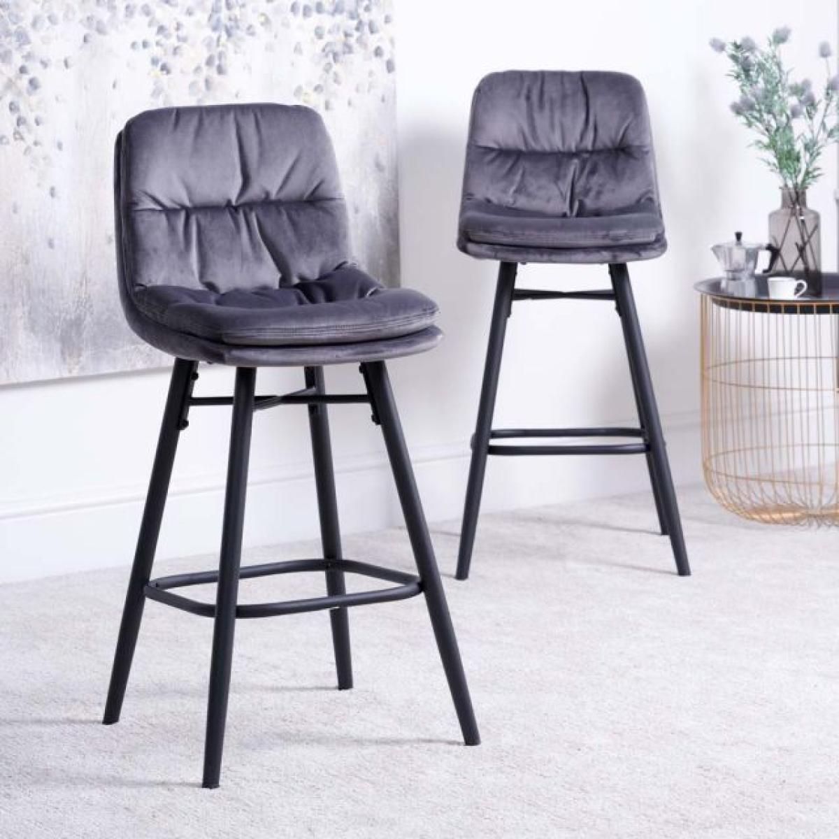 The Enderson barstool is a very comfortable bar stool. Upholstered in a lovely soft velvet with generous padding for great support. The sturdy black metal legs include a foot rest and these stools come as a pair. They will suit a breakfast bar in so many home styles. Upholstered in velvet Black Metal Legs with Footrest Modern Design Dimensions W43 x D52 x H98.5. Simple self assembly