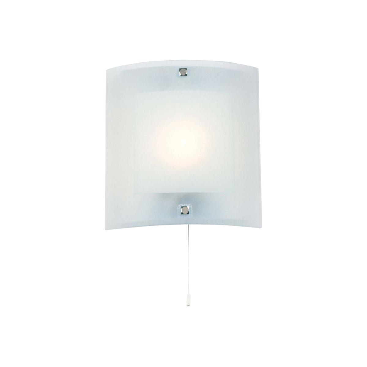 This simple yet elegant wall bracket is the perfect addition add a contemporary feel to your home. The 143 1 Light Wall Light features a curved square shape and a frosty glass finish. This wall bracket measures at 255mm in height and 240mm in width. It also requires a 60w Candle SES bulb. Endon Product Code: 143-WB.