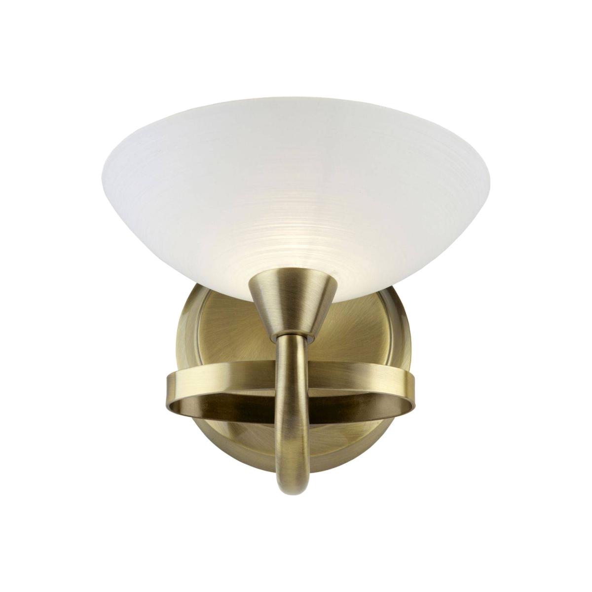Endon Cagney Wall Bracket Antique Brass. The Cagney Wall Bracket is a chic fitting from Endon. The styling of this wall light makes it suitable for homes boasting both traditional or contemporary home decor. Finished in antique brass throughout, the circular backplate supports a delicate glass uplighter shade.