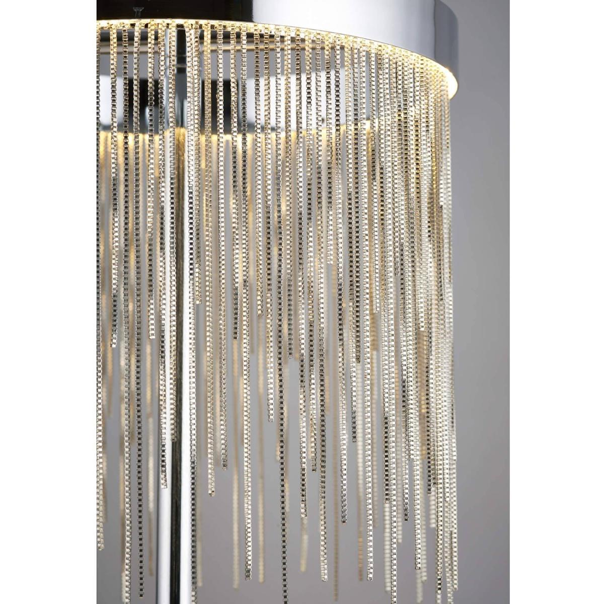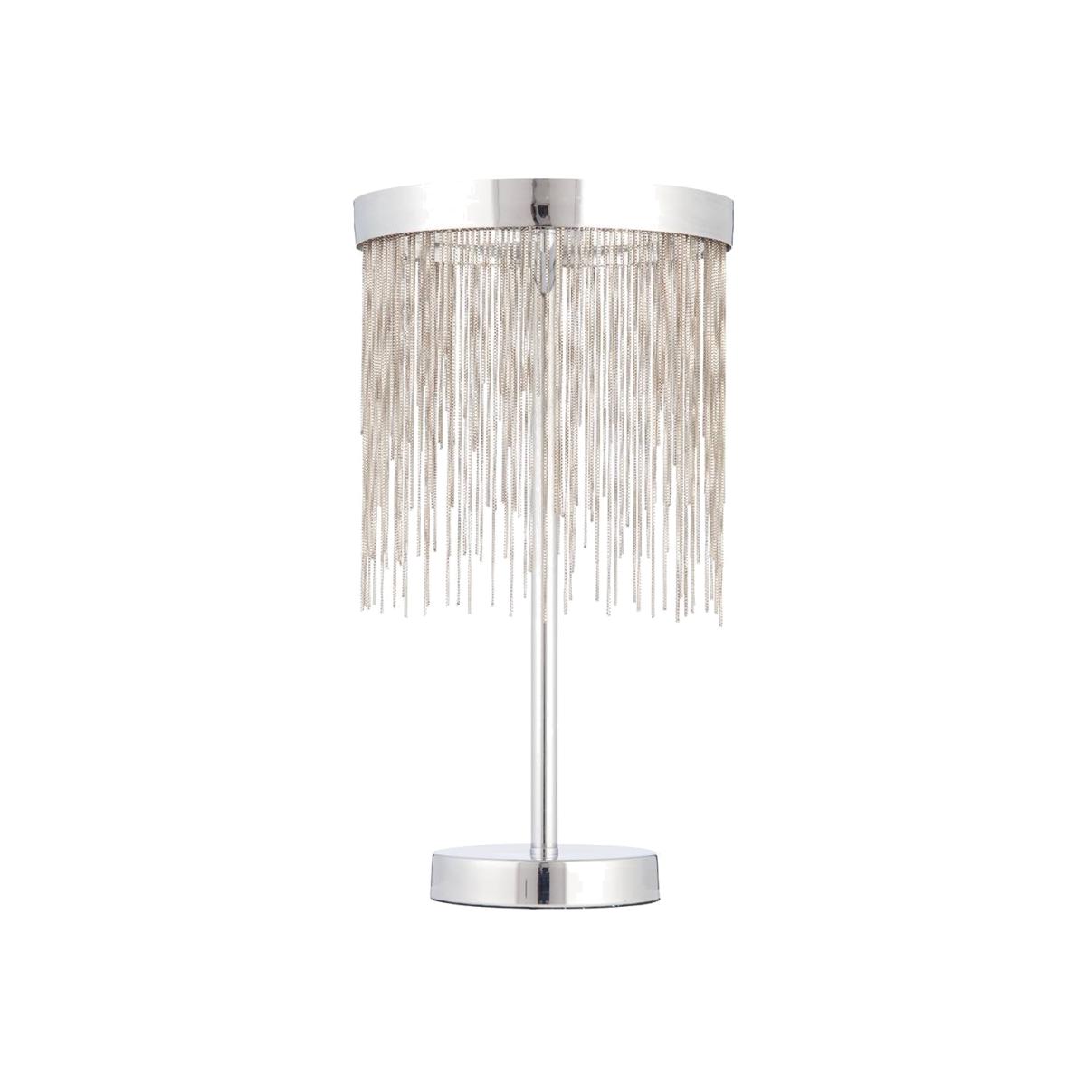 I love this table lamp for its sleek, contemporary look combined with its versatile polished chrome finish, which can complement both modern and transitional schemes. The addition of the fringed shade adds a subtle touch of texture and softness, making it ideal for living rooms, bedrooms, or sleek home offices. Practical styling tips include pairing it with neutral or monochrome furniture for a sophisticated vibe, or using it alongside bold accent colours to create visual interest. Its mid-sized stature makes it a flexible choice for bedside tables or sideboards, and the design's minimalist appeal ensures it stays stylish over time without overpowering other decor elements.