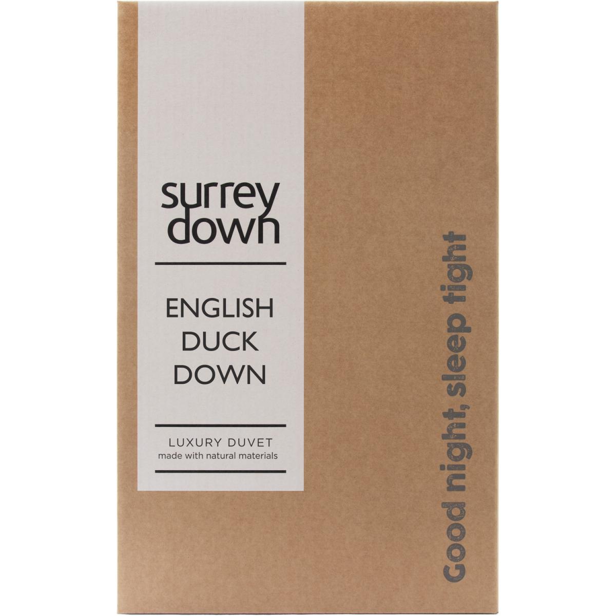 70% English Duck Down and 30% English Duck Feathers this duvet is a sumptuous bedding option for any bed in your home. White cotton cambric makes this a breathable and comfortable duvet. All Surrey Down products are NOMITE certified. This is issued by the EDFA and means that the fabric is so tightly woven that house dust mites cannot penetrate the fabric, making them suitable for sufferers of house dust mite allergies.