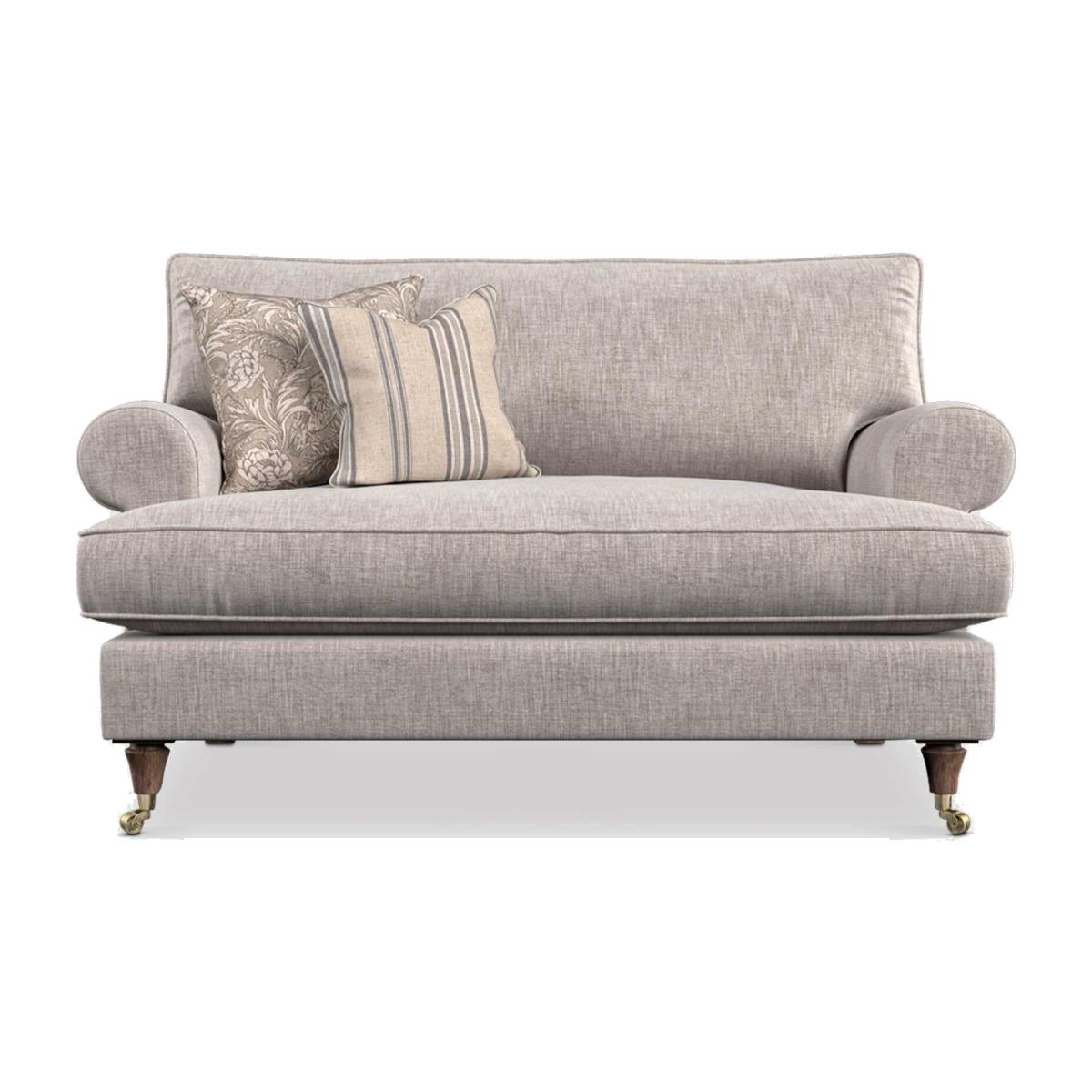 I love the Finch cuddler for its compact two-seater scale and classic rolled arms - it feels right at home in both heritage cottages and pared-back city flats. The soft, neutral weave makes it easy to introduce bolder cushions or a cosy throw, while the turned wood legs with brass castors add just enough character without overwhelming a scheme. For styling, place it against a pale painted wall and layer in textured cushions (think linen stripes or subtle florals) to soften the lines. A slim side table and a woven rug will ground the look, and you can always turn it into a snug reading spot with a small floor lamp and a neat stack of books.
