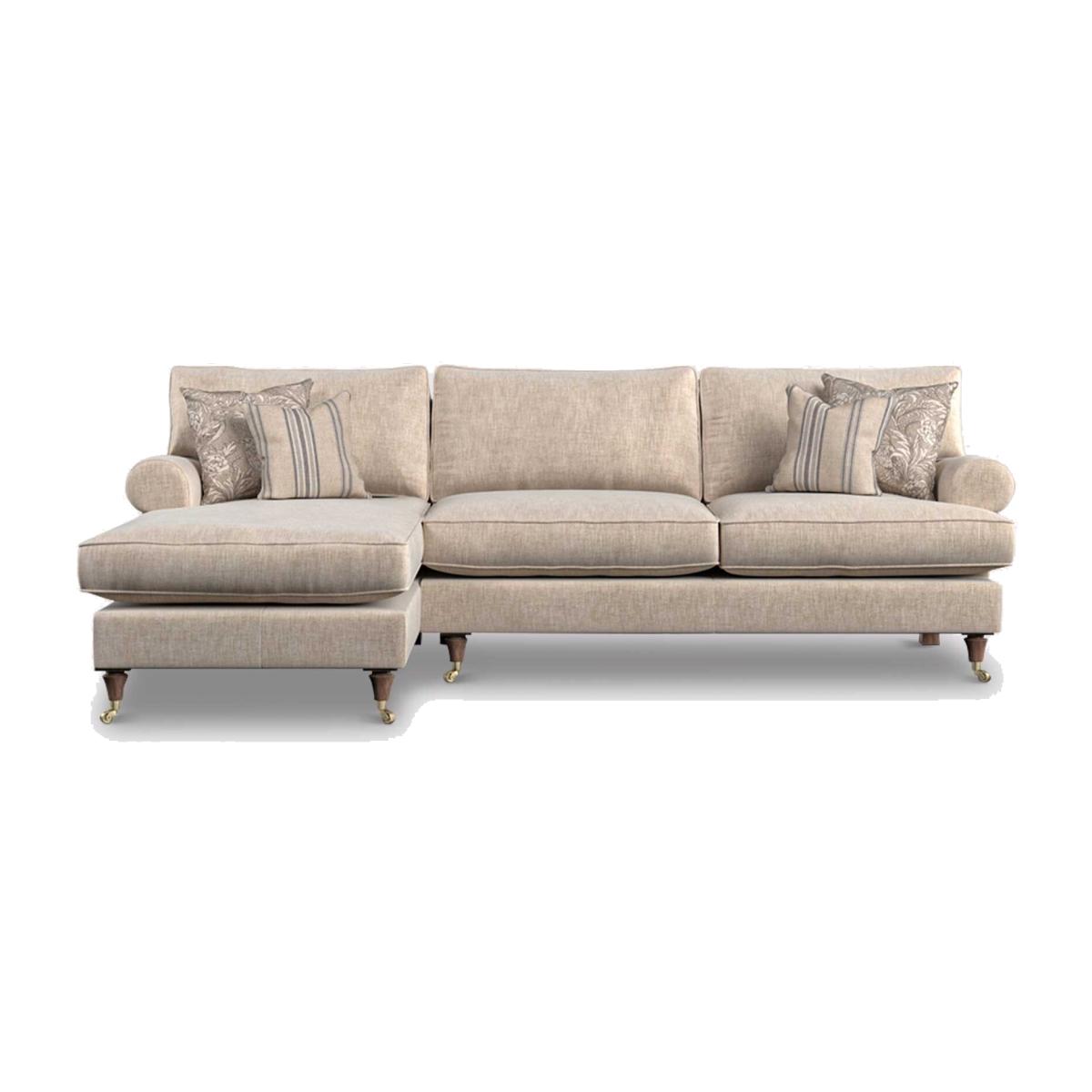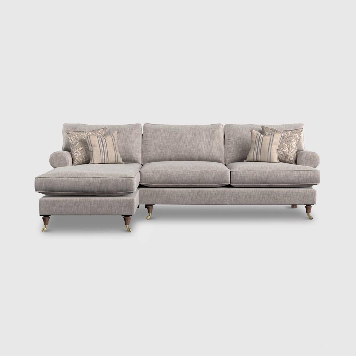 The Finch Linen Mix Pillow Back Left Hand Large Chaise Sofa is a beautifully crafted piece that combines timeless design with modern comfort. Inspired by Charles Darwinrsquo;s Galapagos expedition, it features intricate hand-drawn floral patterns and Finch bird illustrations, bringing a nature-inspired charm to your space. With deep comfort seating, traditional scroll arms, and a cosy pillow back, this chaise sofa is designed for relaxation. Upholstered in a textured linen mix fabric, it offers a breathable and durable feel. Resting on vintage oak feet with optional castors, it adds a touch of classic sophistication to any home.
