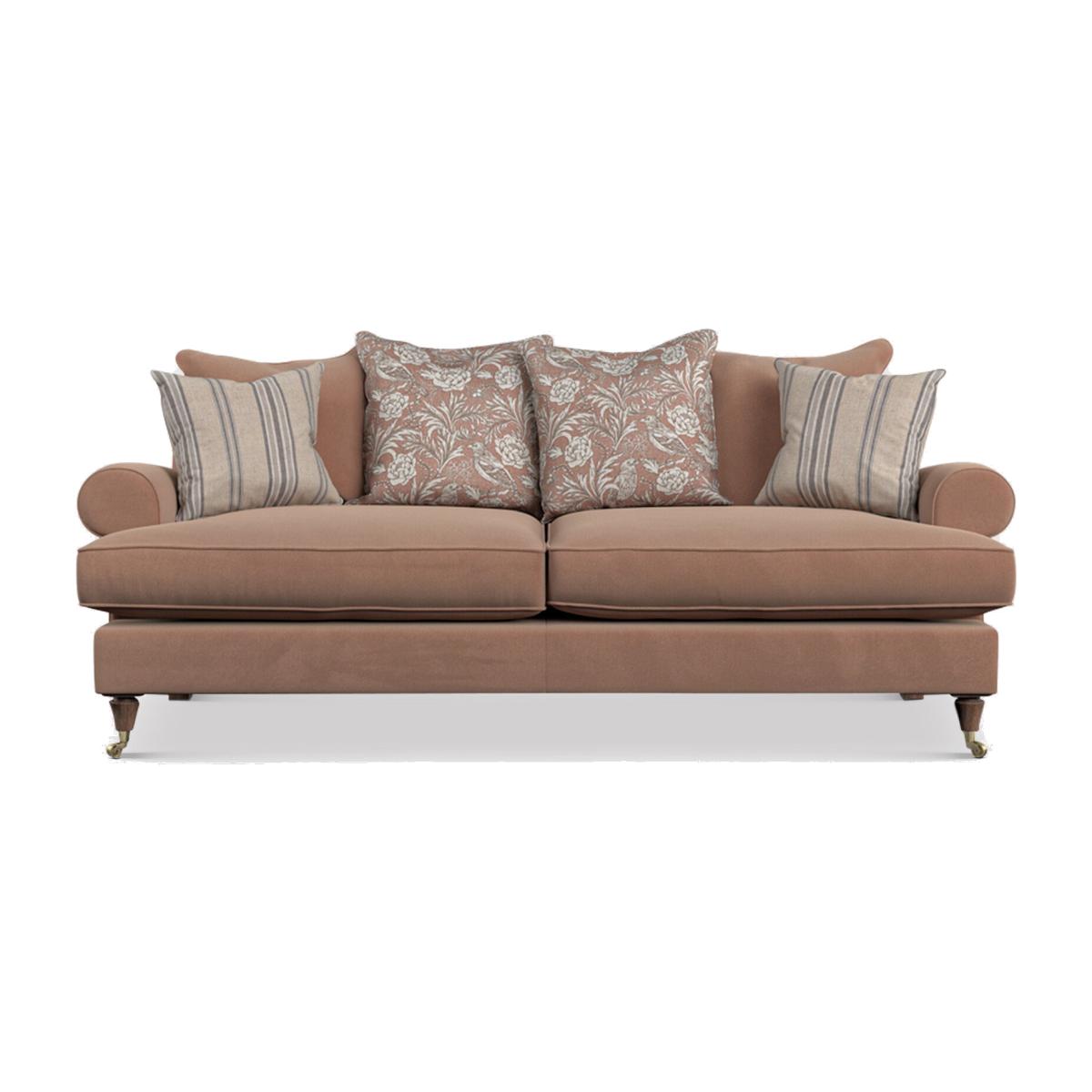 I’m a fan of the Finch sofa in soft pink fabric for its clean lines and versatile hue - it slots just as well into a modern country scheme as it does a contemporary living room. The medium frame and loose back cushions make it easy to layer in textured throws and patterned scatter cushions; try deep teal velvet or muted ochre to lift the palette. Pair with oak side tables and a simple brass lamp for a balanced look, and keep floor coverings neutral to let the sofa remain the focal point.