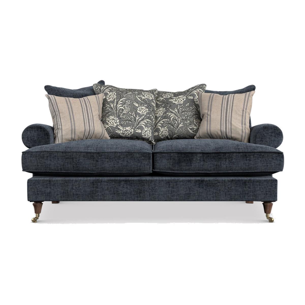 I particularly like how the Finch sofa’s deep blue fabric and classic pillow-back profile bring just the right amount of heritage character without feeling overly formal. Its turned arms and brass castors give it a timeless look that sits comfortably in both country-style settings and more pared-back, contemporary schemes. For styling, layer in soft neutrals - think linen-tone cushions or a pale wool throw - to balance the richness of the blue, and anchor the piece with a natural-fibre rug or a dark-stained wooden coffee table. In a smaller room, pair it with slim metal-leg side tables to keep the space feeling light; in a larger area, flank it with low bookcases or a statement floor lamp to create a cosy reading nook.
