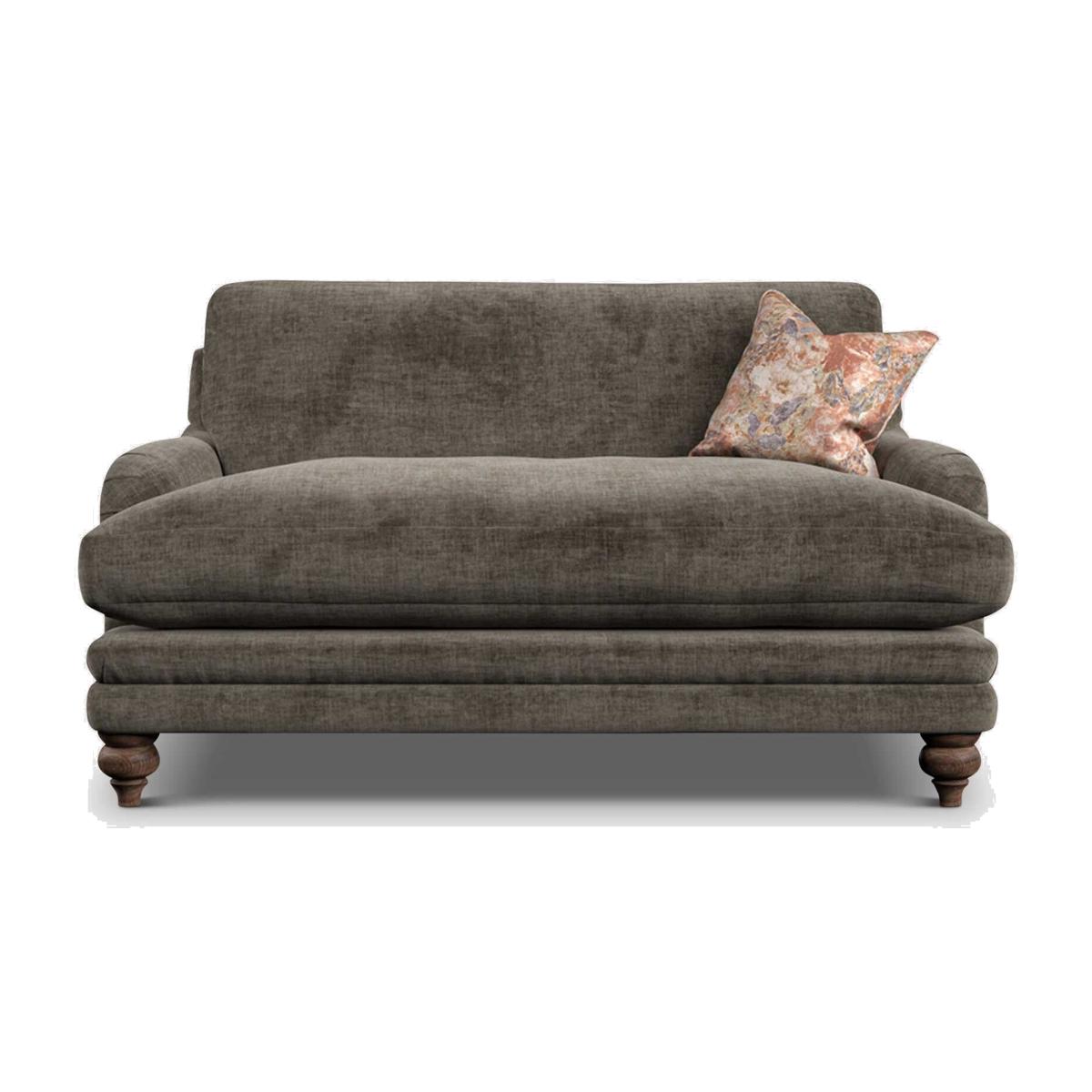 I’d choose the Rosa cuddler for its compact proportions, soft-textured slate-grey fabric and turned timber legs - it gives a relaxed yet tailored look without overwhelming a small space. It sits neatly in both traditional and contemporary schemes, from a country-style nook to a pared-back urban living room. For styling, layer cushions in mixed fabrics (think velvet or linen in muted jewel tones), drape a chunky wool throw over one arm to add depth, and anchor it with a simple oak coffee table or a slimline floor lamp. A potted plant or two alongside will complete the inviting, lived-in feel.
