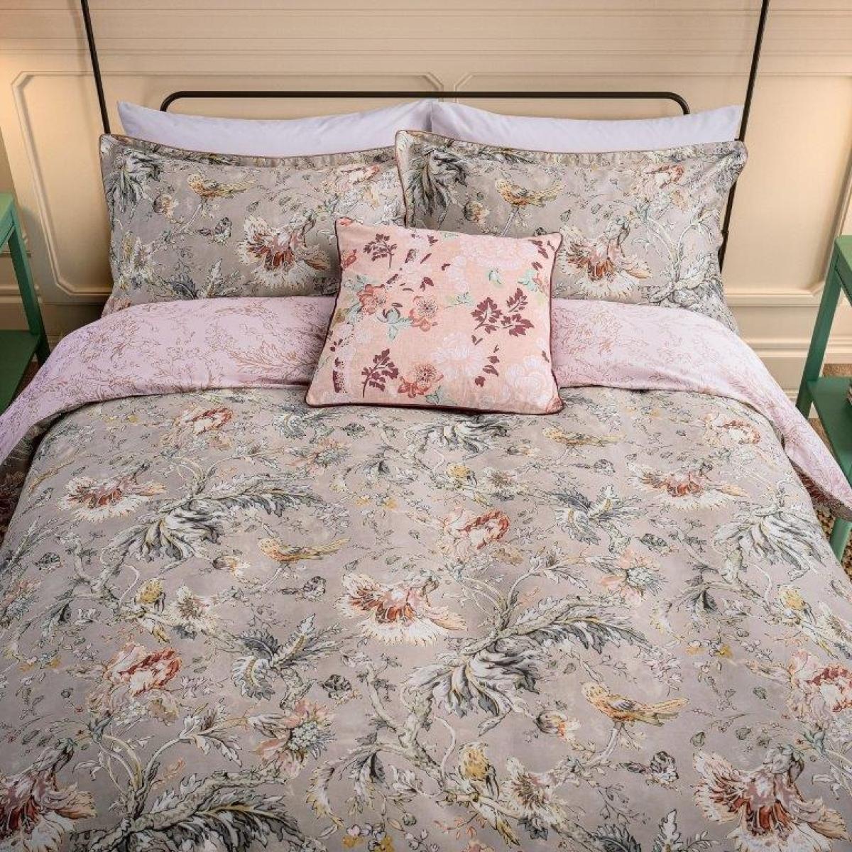 The Suffolk Garden Duvet Set by English Heritage captures timeless elegance with its chinoiserie-inspired print. Small birds and butterflies flit between delicate trailing flowers and foliage, creating a serene and graceful design. Digitally printed onto 200 thread count cotton sateen, the set offers both luxurious softness and a striking finish. The reverse features the same design reimagined in a tonal vintage pink palette, offering a versatile styling option. Inspired by historic wallpaper discovered in the entrance hall of Crowe Hall, Sutton, Suffolk, the design also incorporates the Hoho bird – an East-Asian mythical phoenix – blending cultural heritage with refined British styling. Features: Elegant chinoiserie-style floral print with birds and butterflies Digitally printed onto 200 thread count cotton sateen for a smooth, luxurious feel Reversible design with a tonal vintage pink variation on the reverse Inspired by historic wallpaper found in Crowe Hall, Suffolk, dating back to the early 1600s Set includes duvet cover and matching pillowcase(s) Care Instructions: Machine washable at 40°C Wash dark and light colours separately Tumble dry on a low heat setting Iron on reverse if required The English Heritage Suffolk Garden Duvet Set is a celebration of classic artistry and cultural heritage, bringing luxury, comfort, and a touch of history into your bedroom. Please note All screens vary in colour reproduction and whilst every effort has been made to display the colour as accurately as possible it is for guidance only.