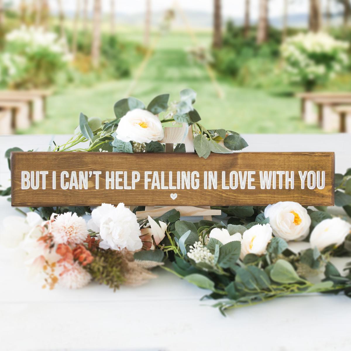 Engraved Wooden But I can't Help Falling in Love With You Sign - Brown