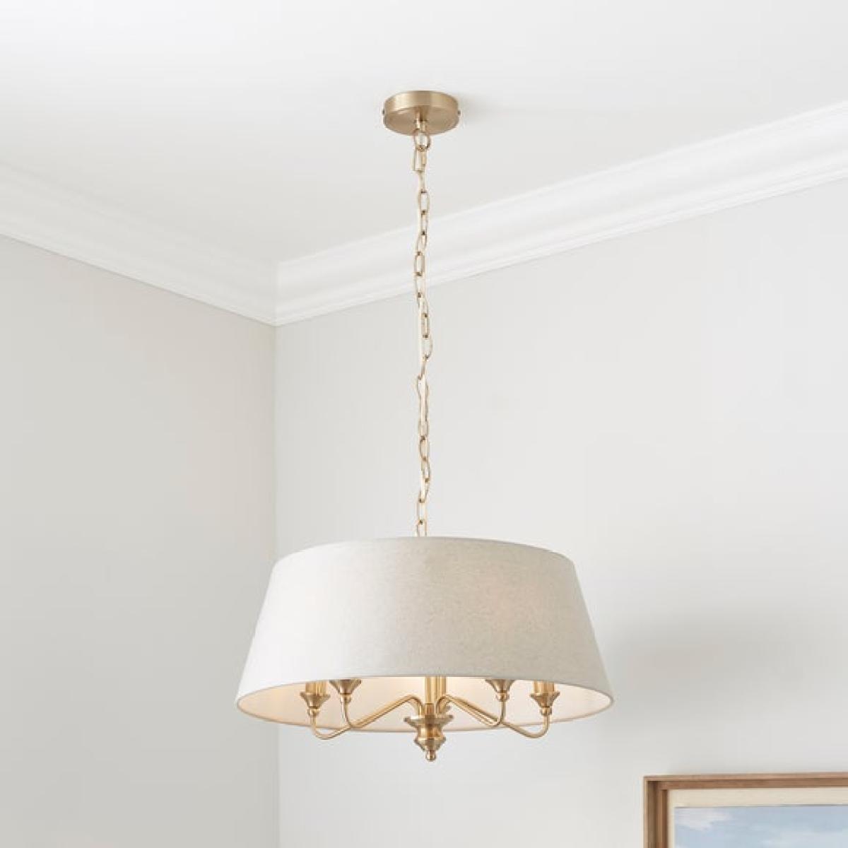 I love this pendant for its versatility and timeless appeal. The Enid 5 Light Adjusta-Style Chandie can work well in a range of interiors, from classic and traditional to more eclectic schemes, thanks to its neutral colour and elegant design. It’s especially practical because you can adjust the height, making it ideal for spaces with high ceilings or to create the perfect ambiance over a dining table or eating nook. To style it effectively, consider pairing it with complementary brass or gold accents, and keep the surrounding decor simple for a sophisticated look. It’s a great choice if you’re looking for a statement piece that’s adaptable and stylish without overwhelming the space.