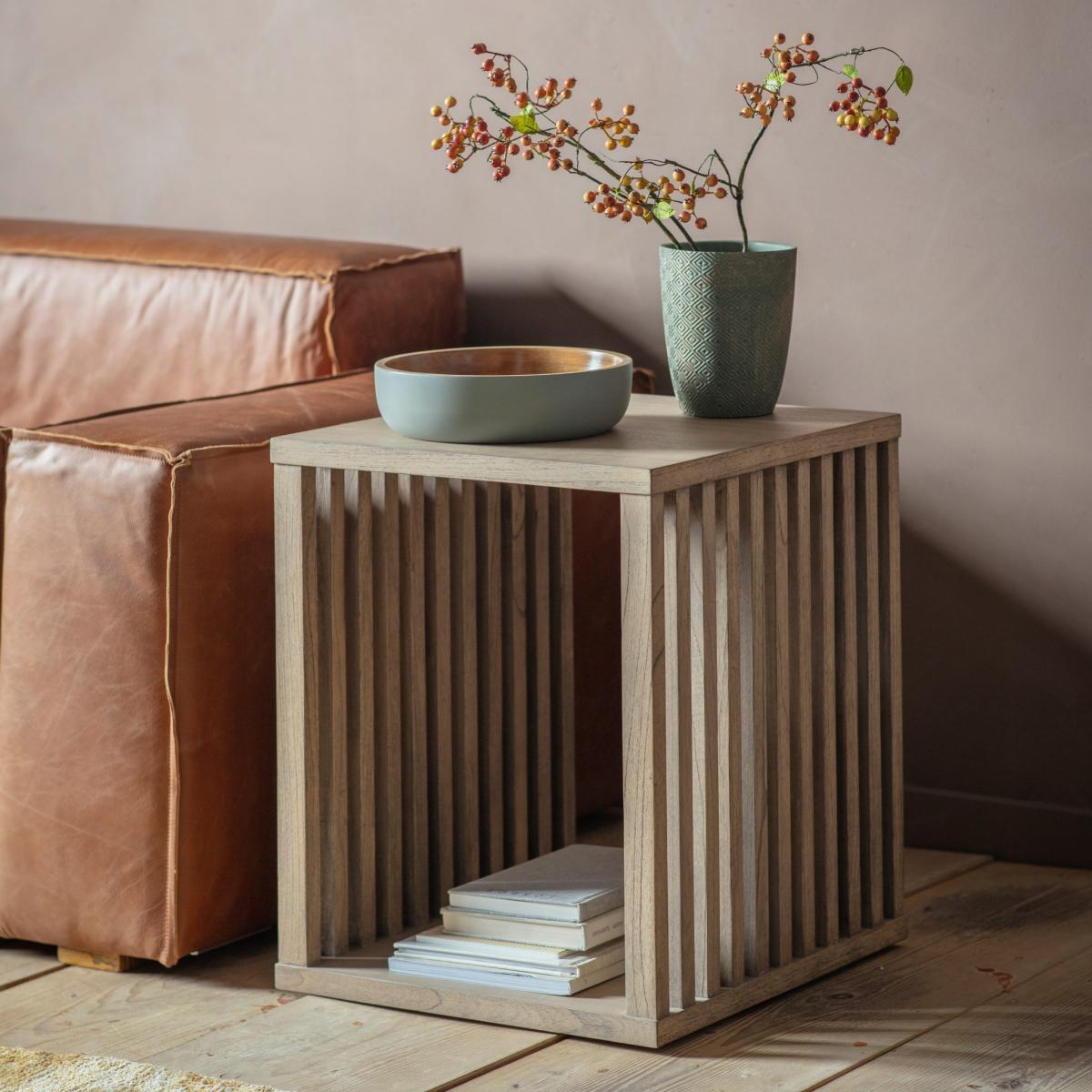 I love this little side table for its clean, minimalist design and versatile timber finish. It works particularly well in modern, Scandinavian, or rustic interiors, adding warmth without clutter. The open slat design makes it feel light and airy, while the size makes it perfect for pairing with a sofa or reading nook. Practical styling tips include using it to display a statement vase or a favourite book, and keeping the bottom shelf free for storage or additional decor. It’s a great piece to create a relaxed, cohesive look in any living space.