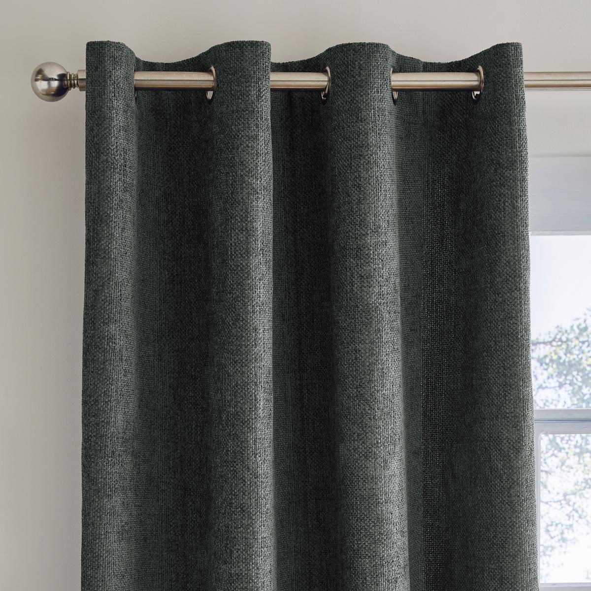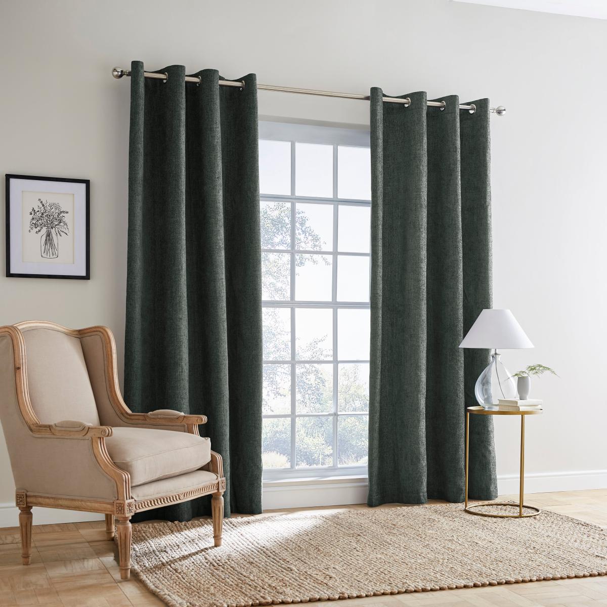 Crafted with care from a chunky woven chenille fabric, the Ensley Cosy Chenille Charcoal Thermal Eyelet Curtain will add a welcoming touch to your living areas. The curtains are made from polyester with a durable and sturdy brushed steel header, making them easy to install.