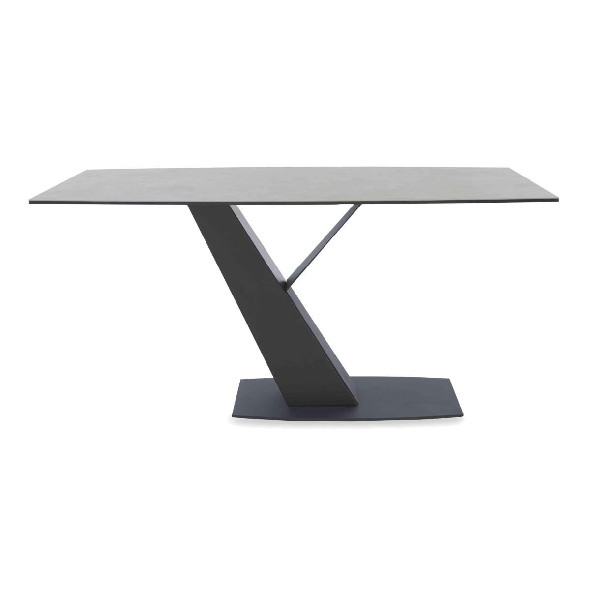 Contemporary industrial style with a sleek ceramic finish – that’s the beauty of the carefully-curated Enterprise collection. Combining gorgeous finishes – Italian ceramic surfaces, the dining table’s black powder-coated metal base, and the crushed velvet upholstery of the dining chairs – with bold modern shapes and creative lines, Enterprise looks fabulous in any dining space. Mix and match the range’s swivel side and arm dining chairs with the boat-shaped dining table or choose one of the ready-made dining sets for a look that’s effortlessly on trend. This beautiful dining table brings style and functionality to a compact space. We love its sleek and durable ceramic top and V-shaped pedestal base. Why you'll love it Compact industrial style with a family-friendly finish. Boat-shaped top is made of Italian ceramic on glass. V-shaped pedestal base in black powder-coated metal. Ceramic top is hardwearing, heat-, scratch- and chip-resistant, and easy to clean. This dining table is part of the Enterprise dining collection. What you need to know Table has a ceramic and glass top, and a metal frame. Seats 6. Please note that the ceramic table top is not 100% heatproof. We recommend using coasters and placemats at all times. This dining table is heavy – please be careful when moving it.