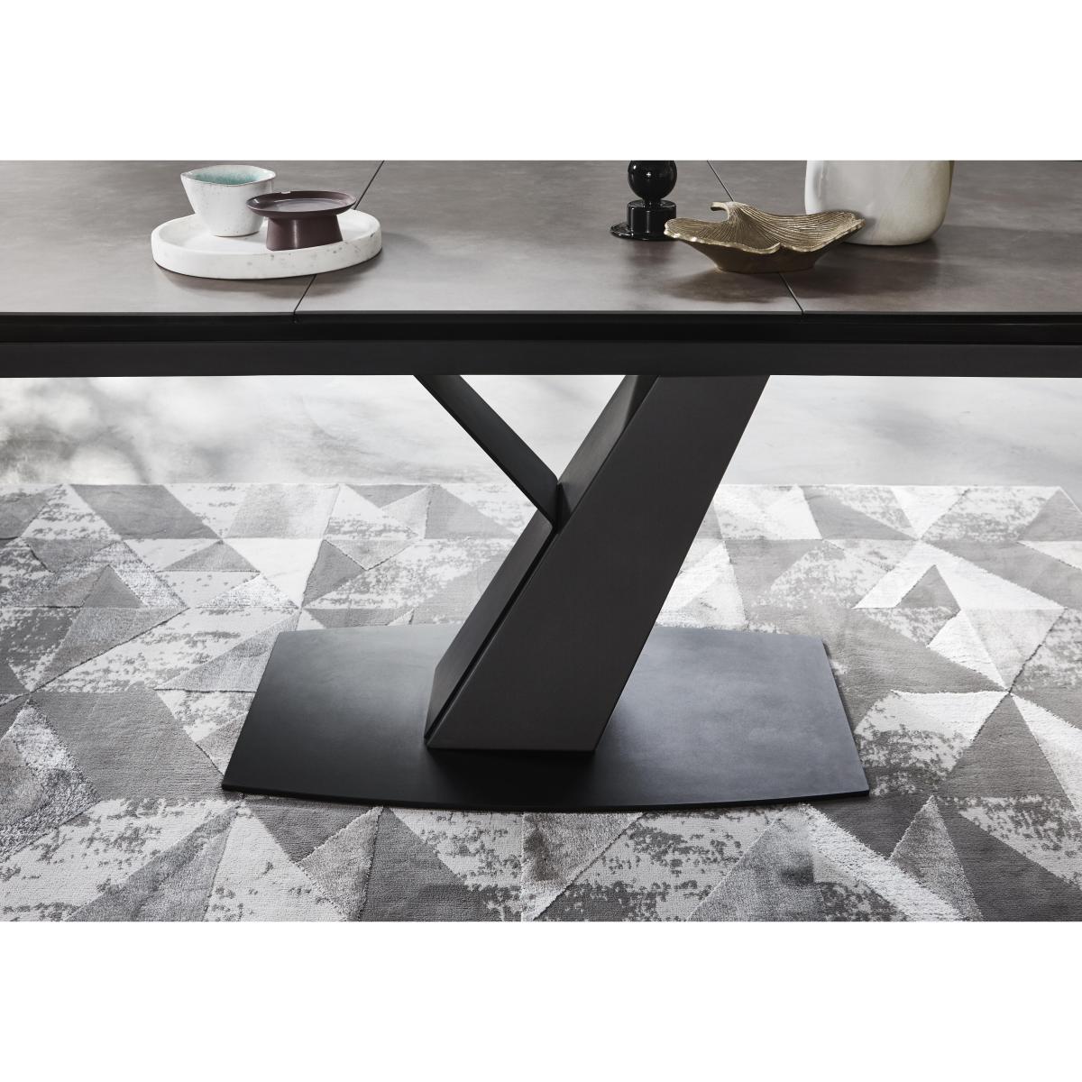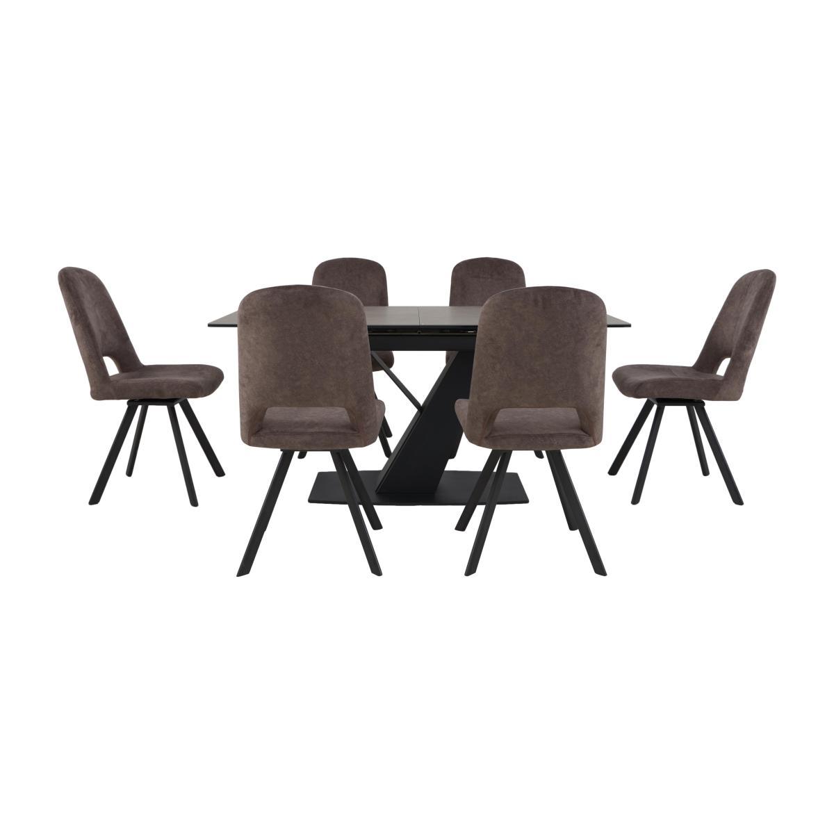 Contemporary industrial style with a sleek ceramic finish – that’s the beauty of the carefully-curated Enterprise collection. Combining gorgeous finishes – Italian ceramic surfaces, the dining table’s black powder-coated metal base, and the crushed velvet upholstery of the dining chairs – with bold modern shapes and creative lines, Enterprise looks fabulous in any dining space. Mix and match the range’s swivel side and arm dining chairs with the boat-shaped dining table or choose one of the ready-made dining sets for a look that’s effortlessly on trend. Perfect for grownup dinner parties and ideal for family occasions, this contemporary-cool dining set features a gorgeous ceramic dining table with a very cool swivel-motion extension leaf. Why you’ll love it. Italian ceramic-topped dining table and chair set is cool and contemporary. Casual industrial style. On trend boat-shaped table top finished in taupe. Striking asymmetric angled pedestal base in black powder-coated metal. Innovative extension mechanism – integrated leaf smoothly swivels into place. 6 swivel side chairs feature cool cut-out backs. Crushed velvet upholstery in a chocolate colour. Slender black metal legs. Ceramic is hardwearing and easy to clean. What you need to know. Dining table seats 6 and extends to seat 10. This table is heavy – please be careful when moving it. Complete your dining room with the Enterprise sideboard. Need more dining chairs? Mix and match Enterprise side chairs and arm chairs.