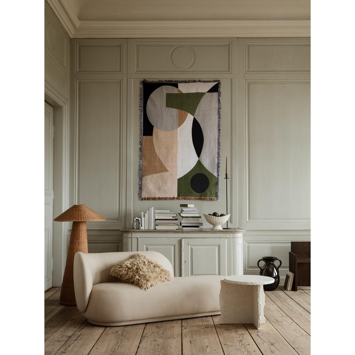 Entire tapestry blanket from Danish Ferm Living is made of cotton and has fringes on the sides. Print designed by Berit Mogensen Lopez. Wrap the blanket around your shoulders on a chilly day and drape it on the sofa when you're not using it. You can also display it on the wall.