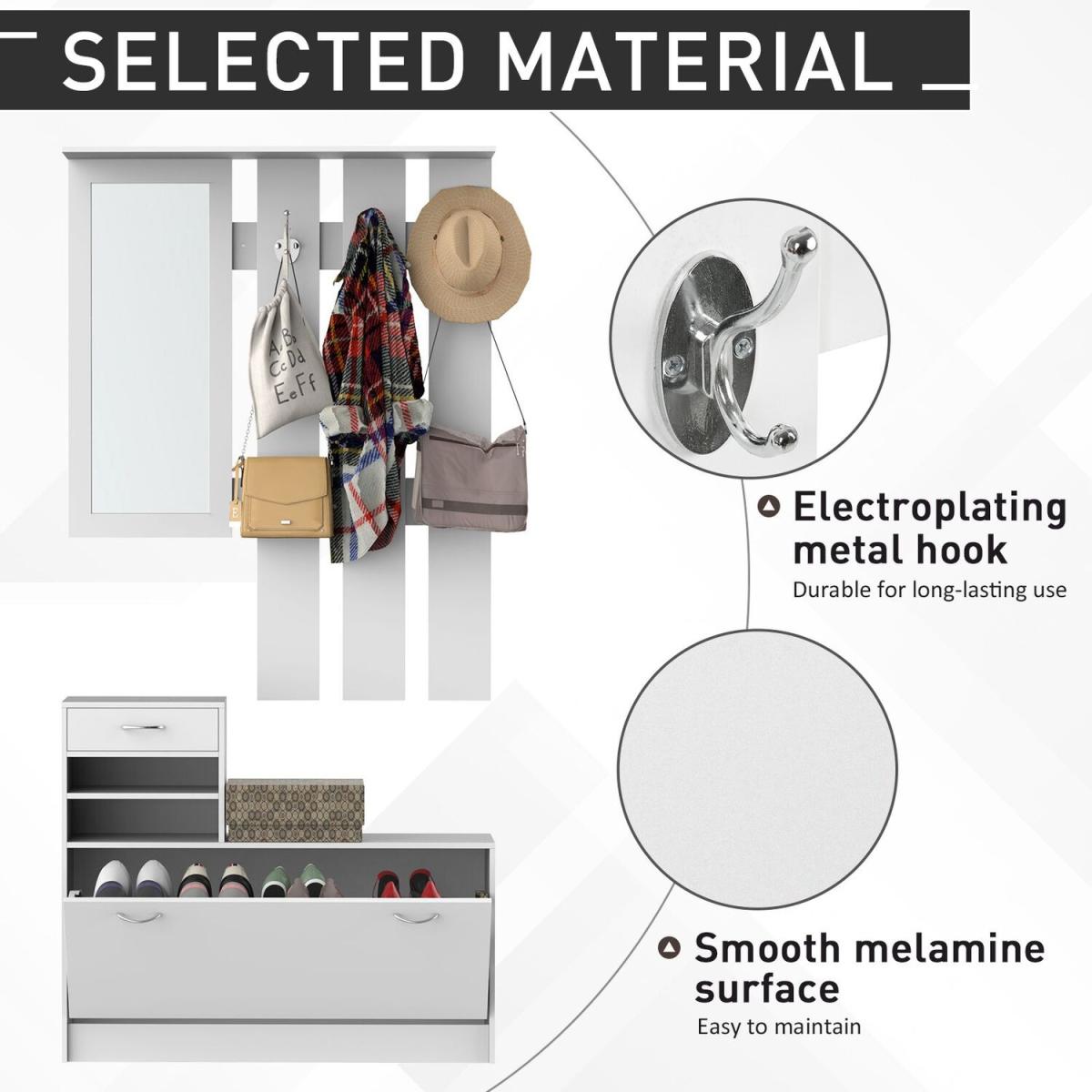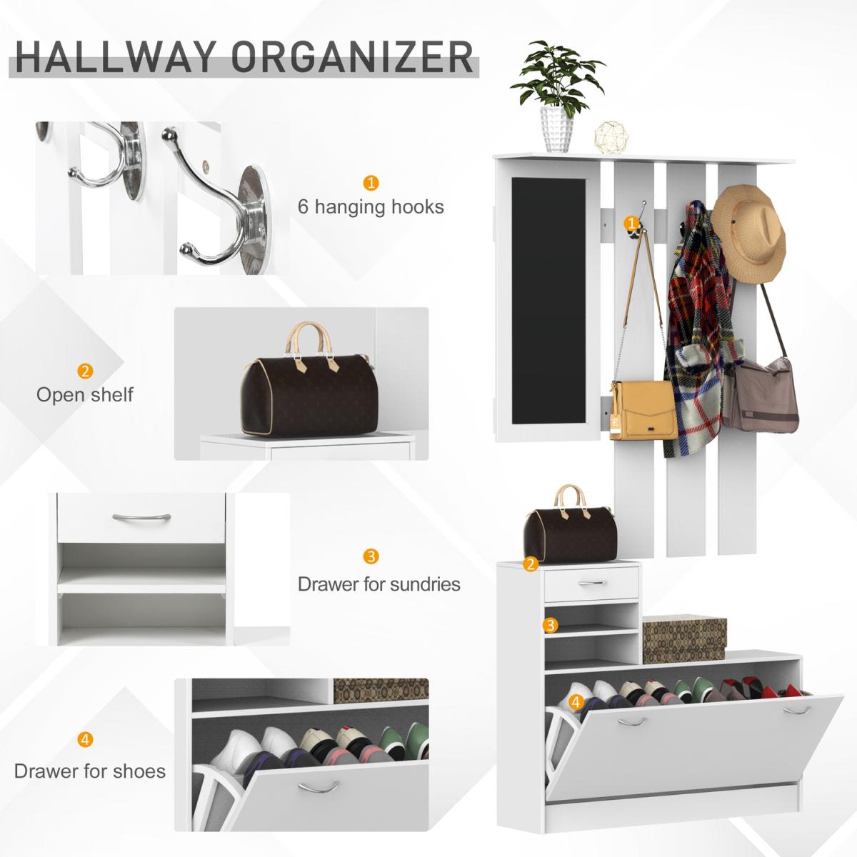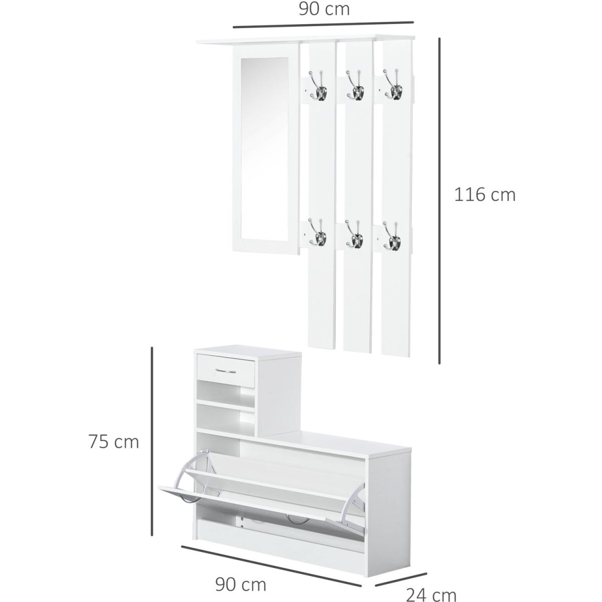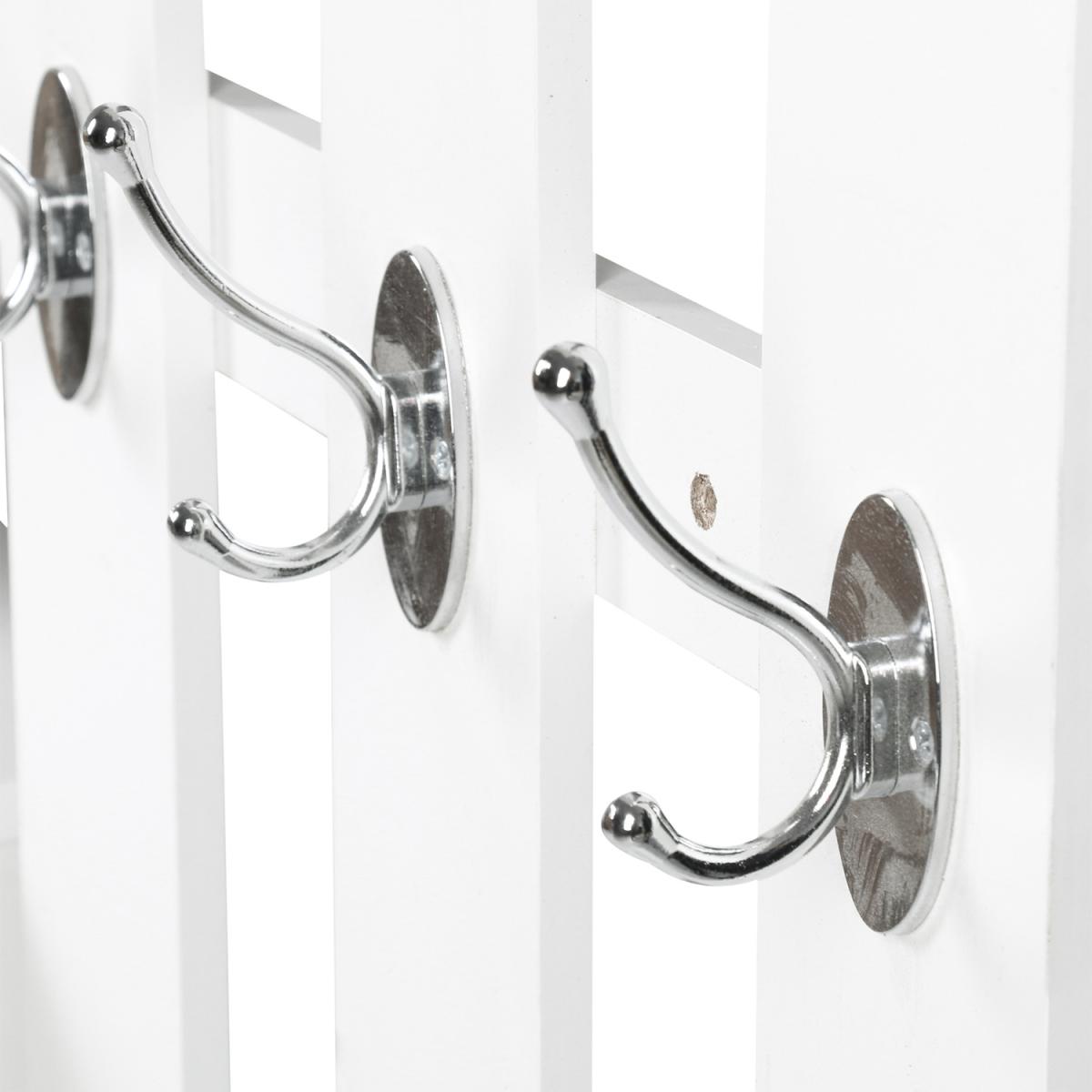 This Homcom show storage with wall hangers is a great solution by an entrance or hallway. The 3 in 1 system offers everything you need, from a place to keep your shoes, a mirror to see your self before you leave and a wall hanger to keep your jackets and coats. Made from particleboard construction and ample storage space, this design can live perfectly within any home and decor.