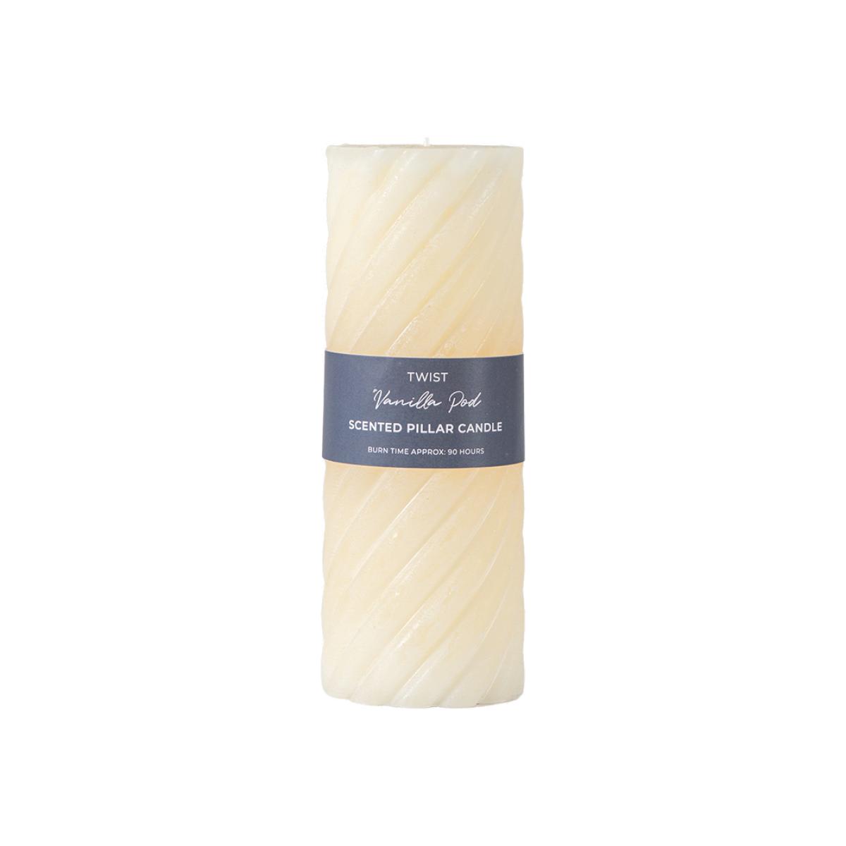 A little twist on a classic. The twisted grooves give this standard pillar candle a little update. In a classic ivory tone with a cosy vanilla scent, this candle is the perfect addition to any lantern. Each candle has approximately 90 hours of burn time.