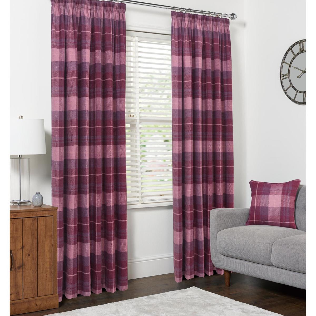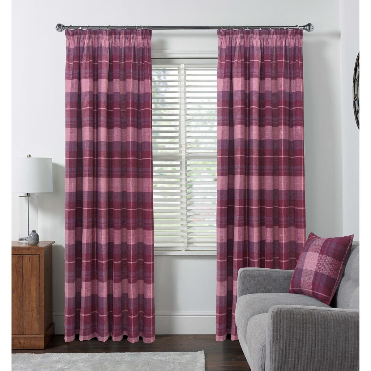 Enya Geo Check Mulberry Curtains - Mulberry / 229cm