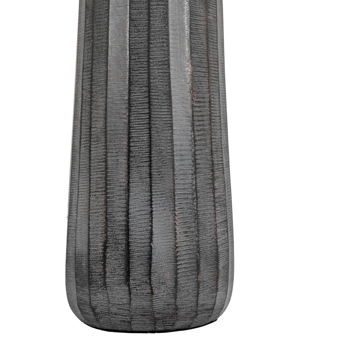 With a tall and elegant shape and dark grey linear pattern, this bottle vase makes a striking statement. Place with the coordinating vases to create an even more eye catching display.