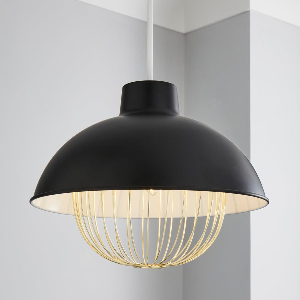 Perfect for adding a modern touch to your home, the Emzo easy fit pendant features a painted shade, available in a choice of colours to suit your space. This shade is complete with a gold toned plated cage that injects a stylish element to any modern and traditional home.
