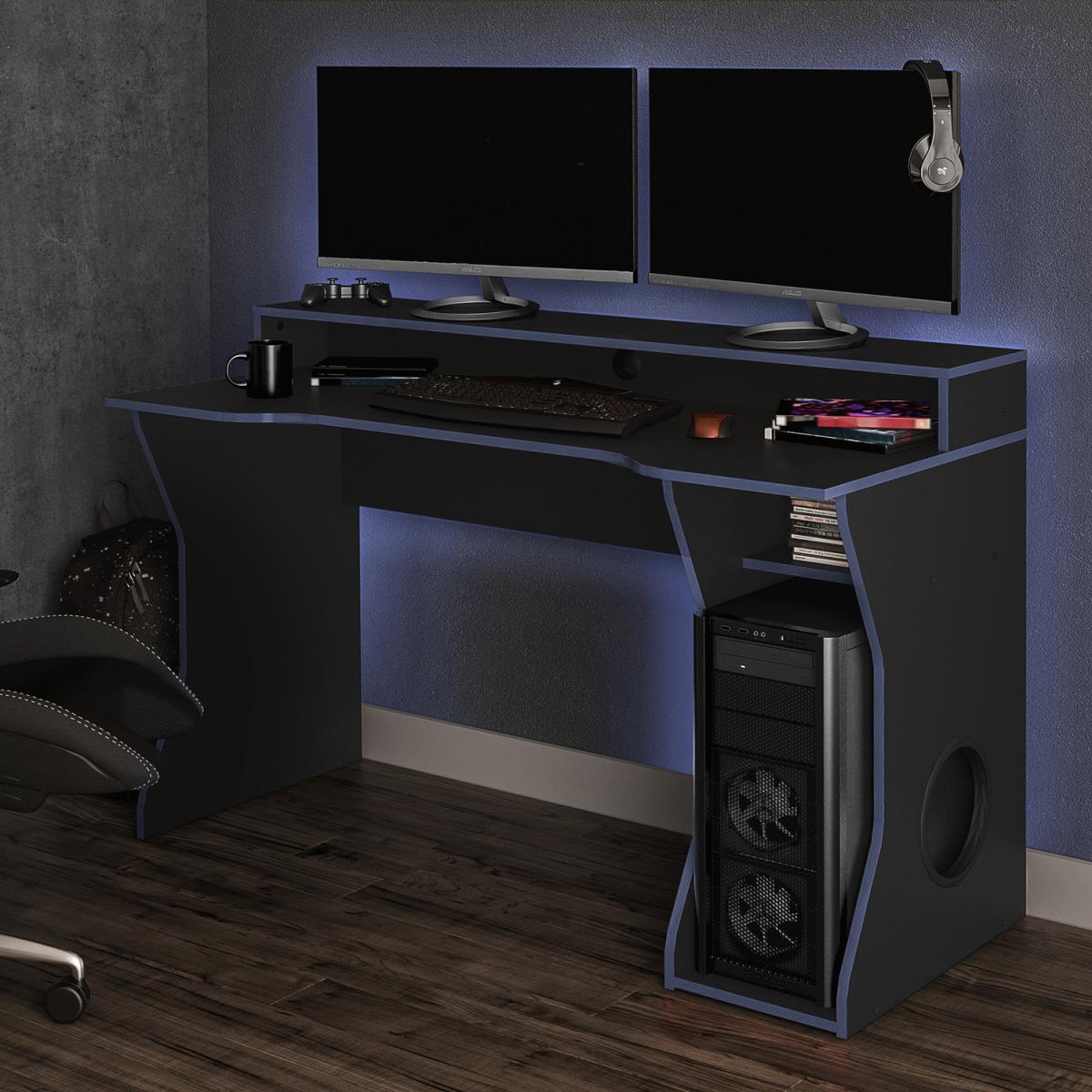 I really like the Enzo gaming desk’s bold black and blue colourway - it’s perfect for creating a sleek, modern gaming setup or a statement workspace. It works well in contemporary interiors, especially those with darker colour palettes or minimalist aesthetics, where the colour contrast can really pop. For practical styling tips, consider keeping the desk surface relatively clear and organised to let the striking colour details stand out. Pair it with black or blue accessories, such as a gaming chair, desk mat, or shelving, to create a cohesive look. Adding subtle LED lighting beneath or behind the desk could enhance the tech-inspired vibe, making it both functional and visually appealing.