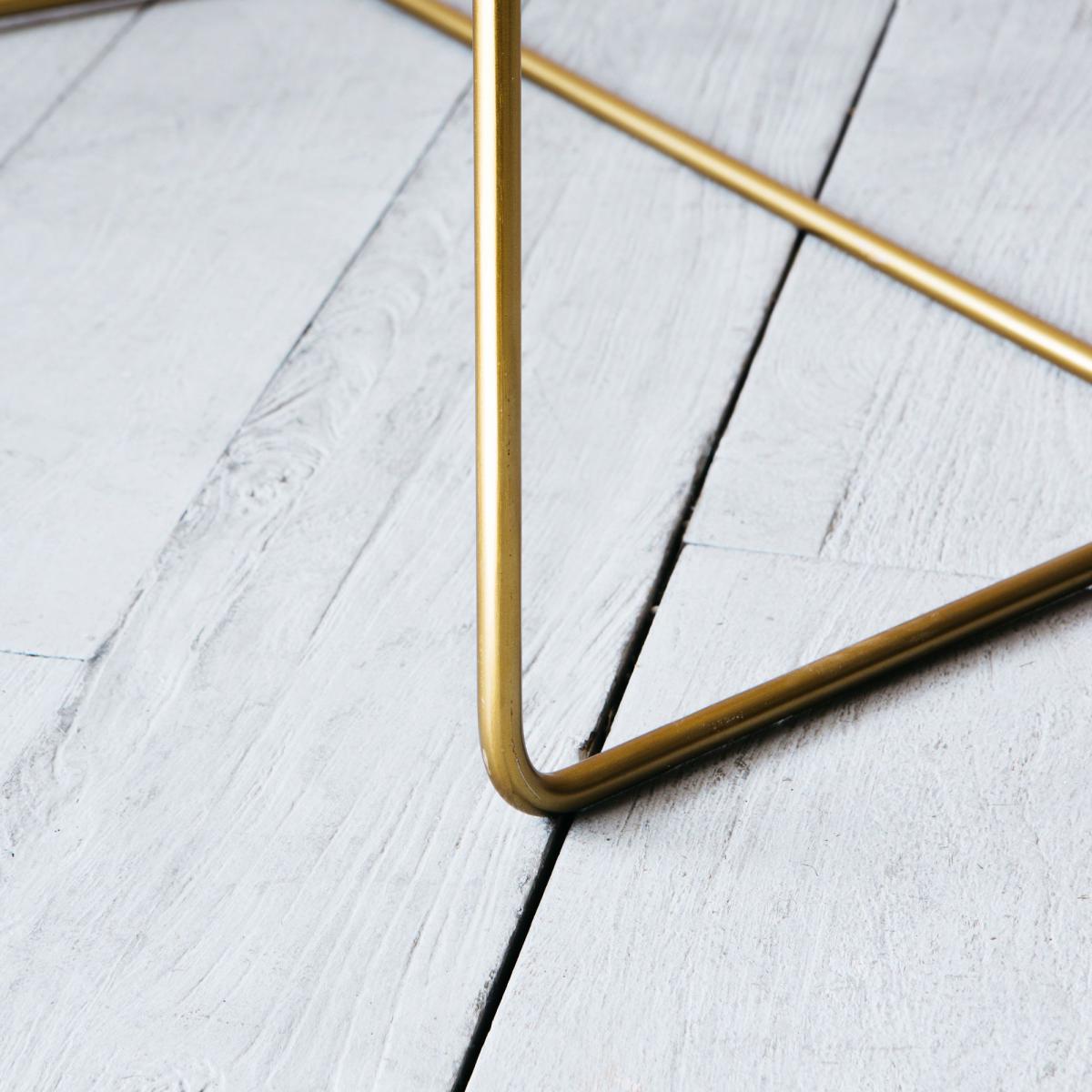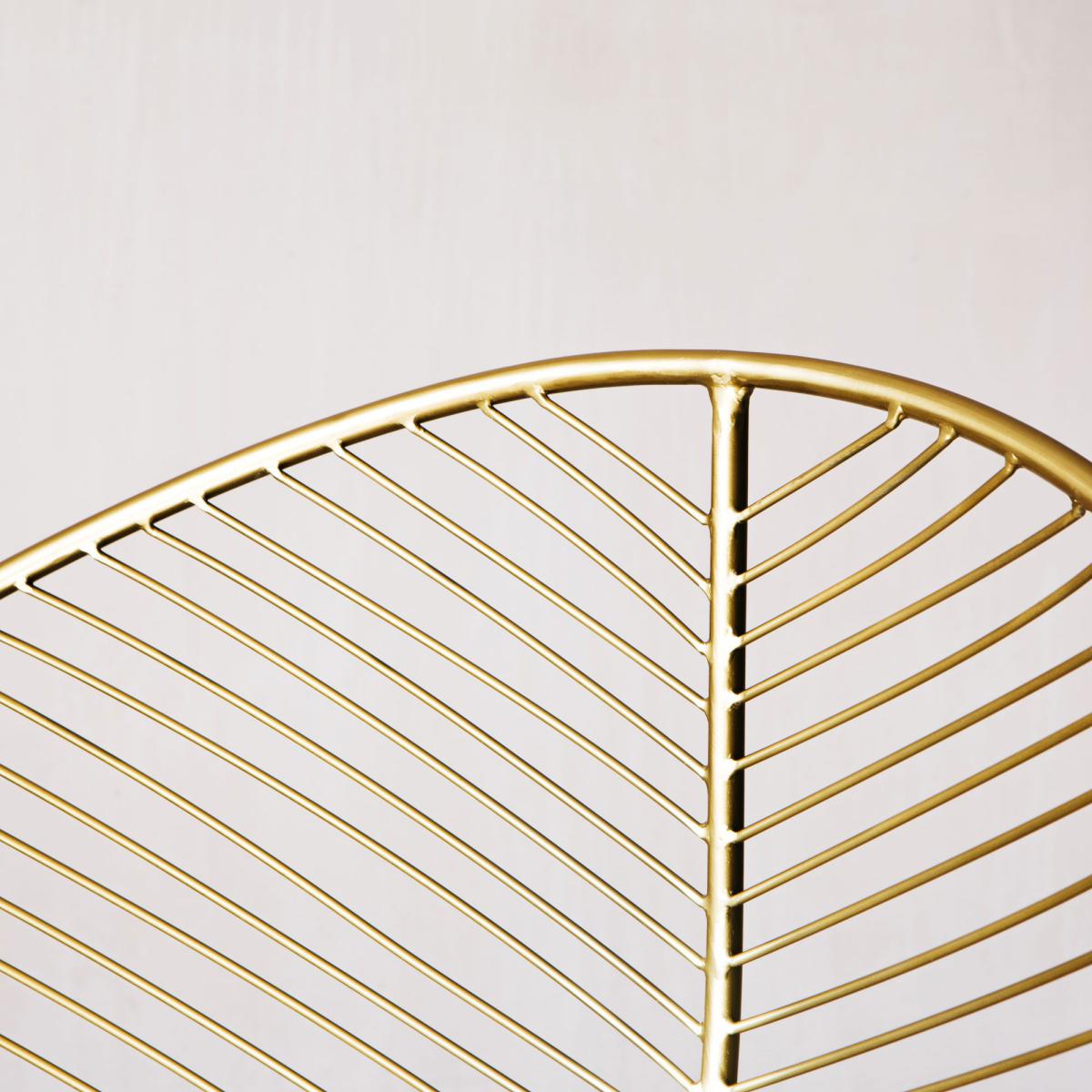 Layer this gold iron lounge chair with cosy sheepskins and nestle into the relaxing cocoon-like shape.