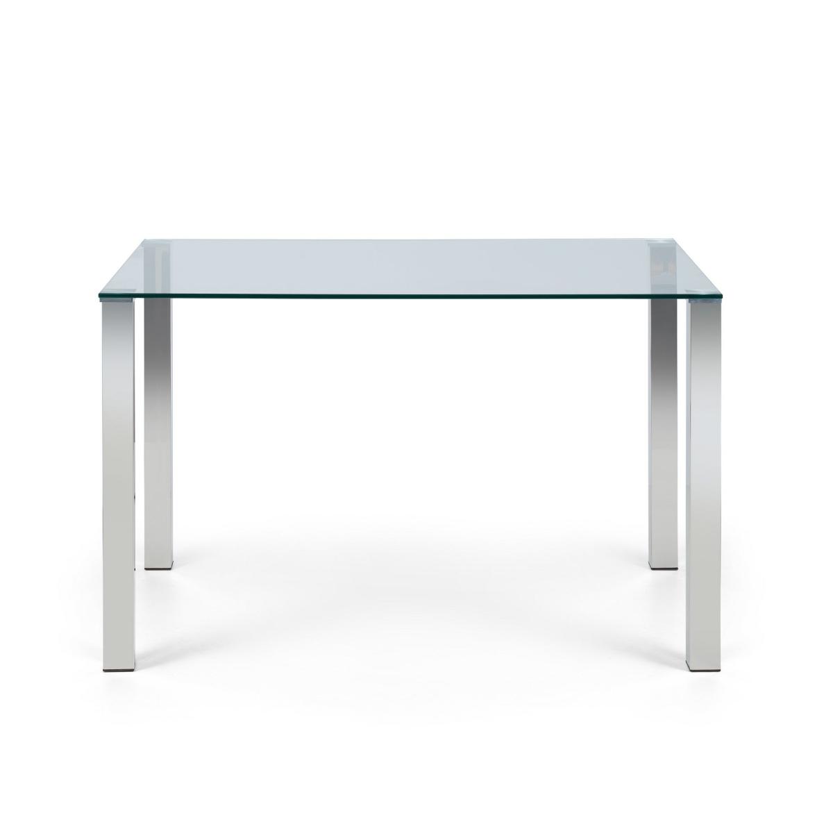 Dine in class and glass, this Enzo dining table set is perfect for adding a modern touch to your home. This polished chrome dining set is made with a polished chrome base and tempered glass top for a sleek and durable construction. This set includes 4 modern styled Kari chairs that complete the look for a high-class restaurant appeal right in your own home.