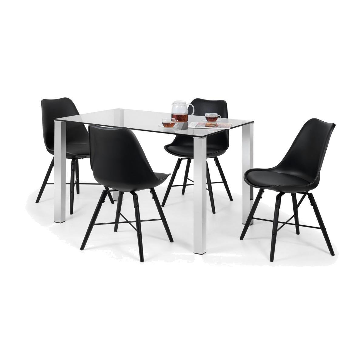 Enzo Rectangular Glass Dining Table with 4 Kari Black Dining Chairs Chrome