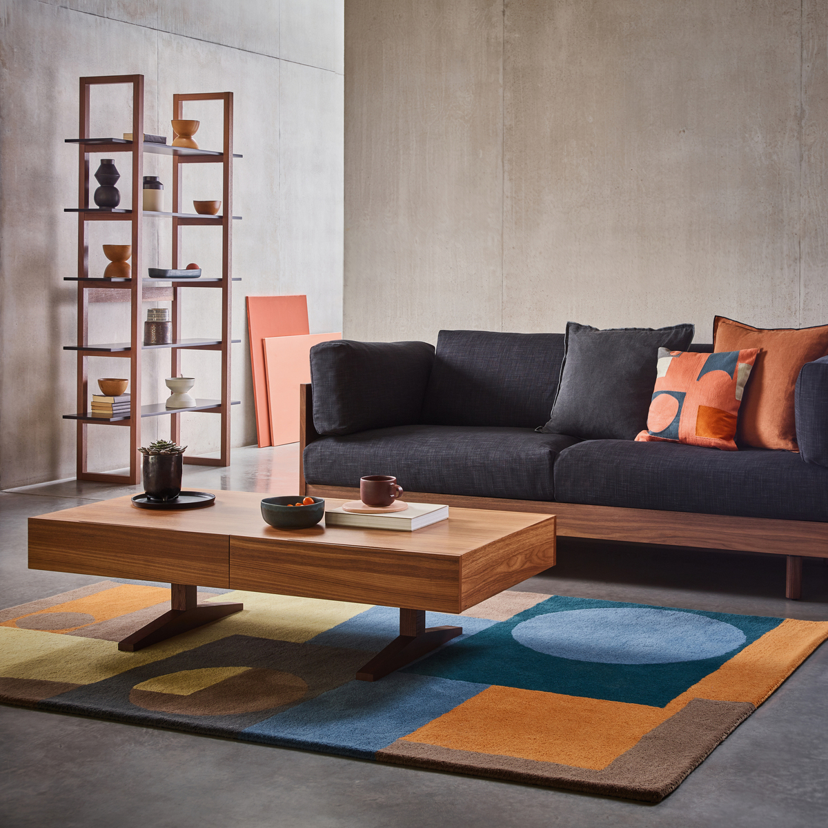 This coffee table is a sleek, versatile piece that works particularly well in both contemporary and mid-century styled interiors. The walnut finish adds warmth and richness, anchoring a living room with its understated elegance. I love that it offers practical storage, keeping clutter out of sight while maintaining a clean and organised look. To style around it, consider layering with textured cushions or throws on nearby seating, and keep tabletop accessories minimal-think a statement lamp or a simple tray for coasters and magazines. Its timeless look makes it easy to incorporate into various colour palettes, from neutral tones to bold accent colours, making sure your space feels cohesive and well curated.
