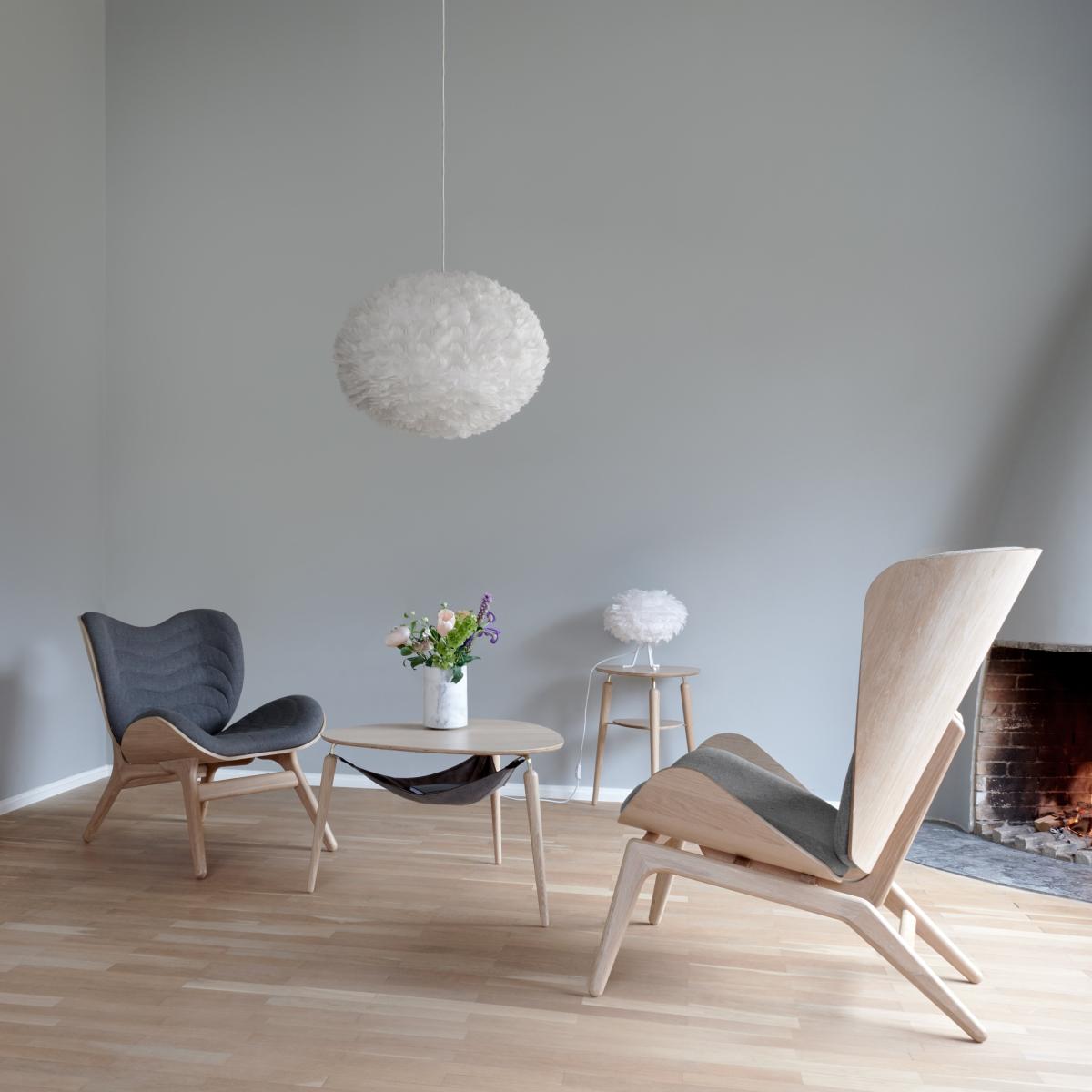 The beautiful and unique Eos lamp was designed by Soren Ravn Christensen for the Danish brand Umage / Vita. The lamp is made of white goose feathers and paper and comes delivered in a flat box with mounting instructions that are very easy to follow. The lamp fits perfectly in most rooms and spreads a warm, diffused light when lit. Available in different sizes.
