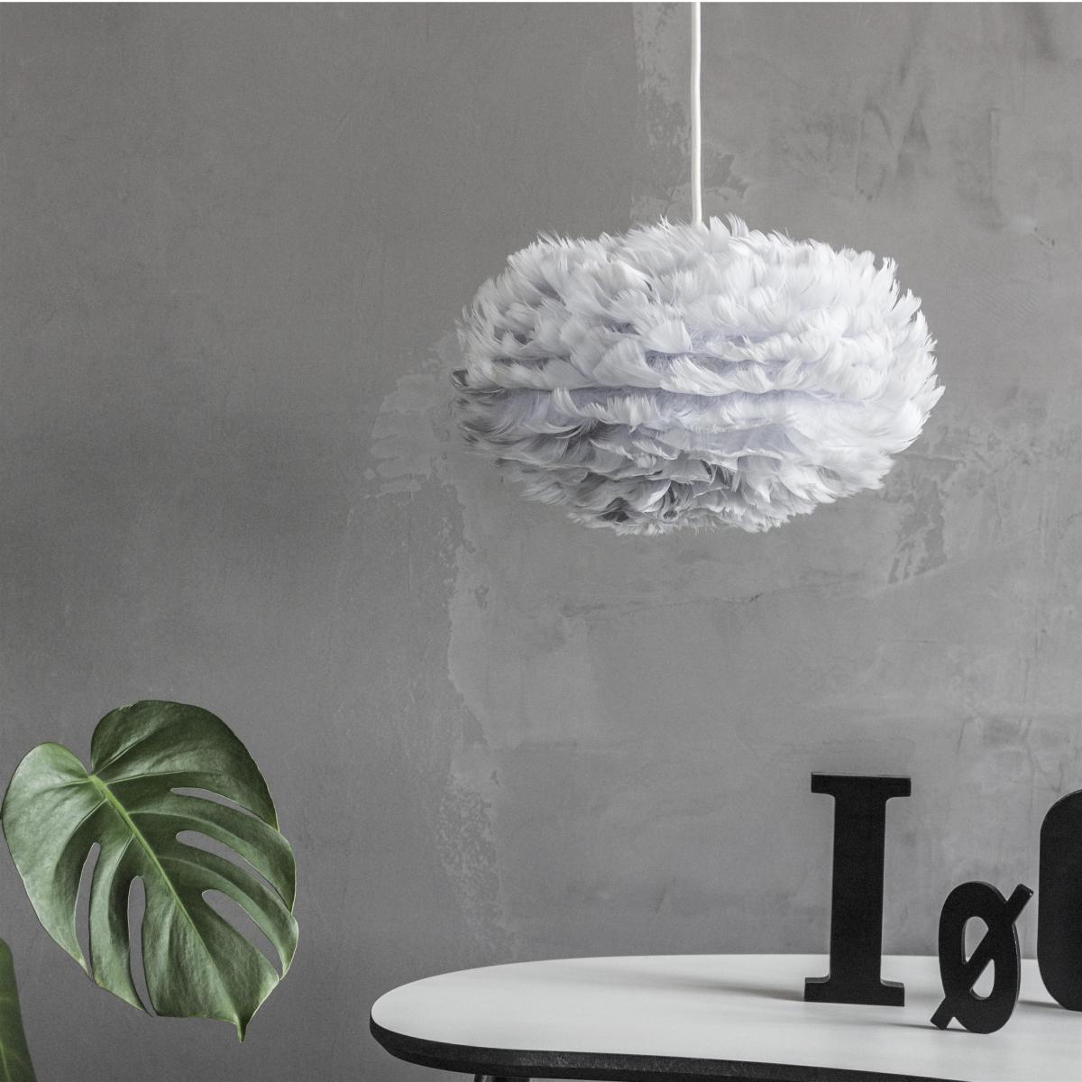 The dreamy Eos lamp shade in light grey was designed by the designer Søren Ravn Christensen. The lamp is made of light grey goose feathers and paper and is delivered in a flat box. The versatile lamp shade can be used for as a pendant light or as a floor lamp when combined with the Umage / Vita cord set or floor stand (sold separately). The perfect shade for a romantic interior!.