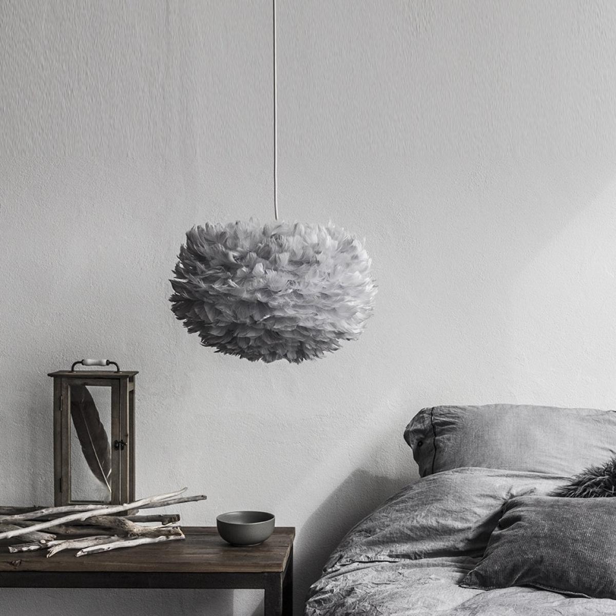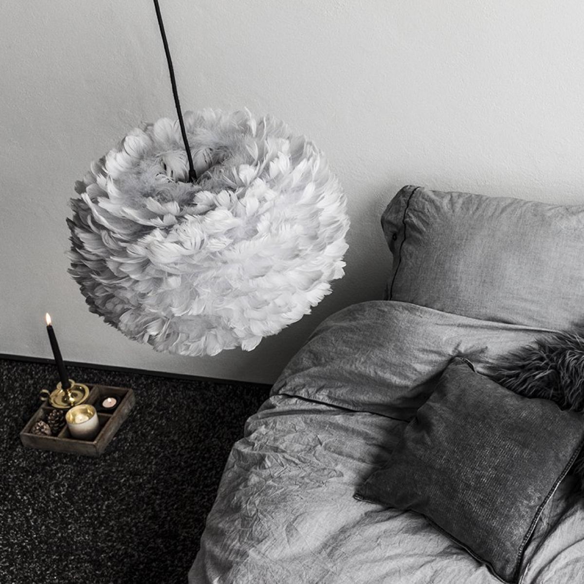 The dreamy Eos lamp shade in light grey was designed by the designer Søren Ravn Christensen. The lamp is made of light grey goose feathers and paper and is delivered in a flat box. The versatile lamp shade can be used for as a pendant light or as a floor lamp when combined with the Umage / Vita cord set or floor stand (sold separately). The perfect shade for a romantic interior!.