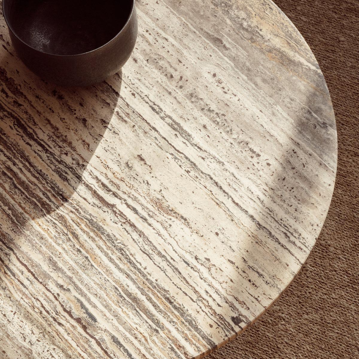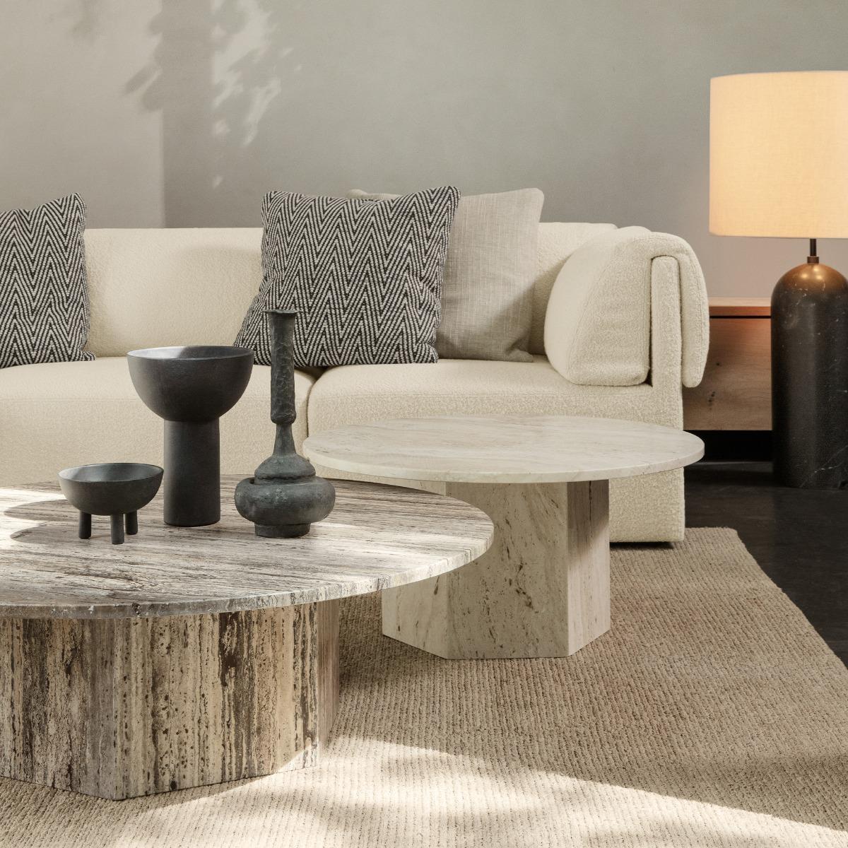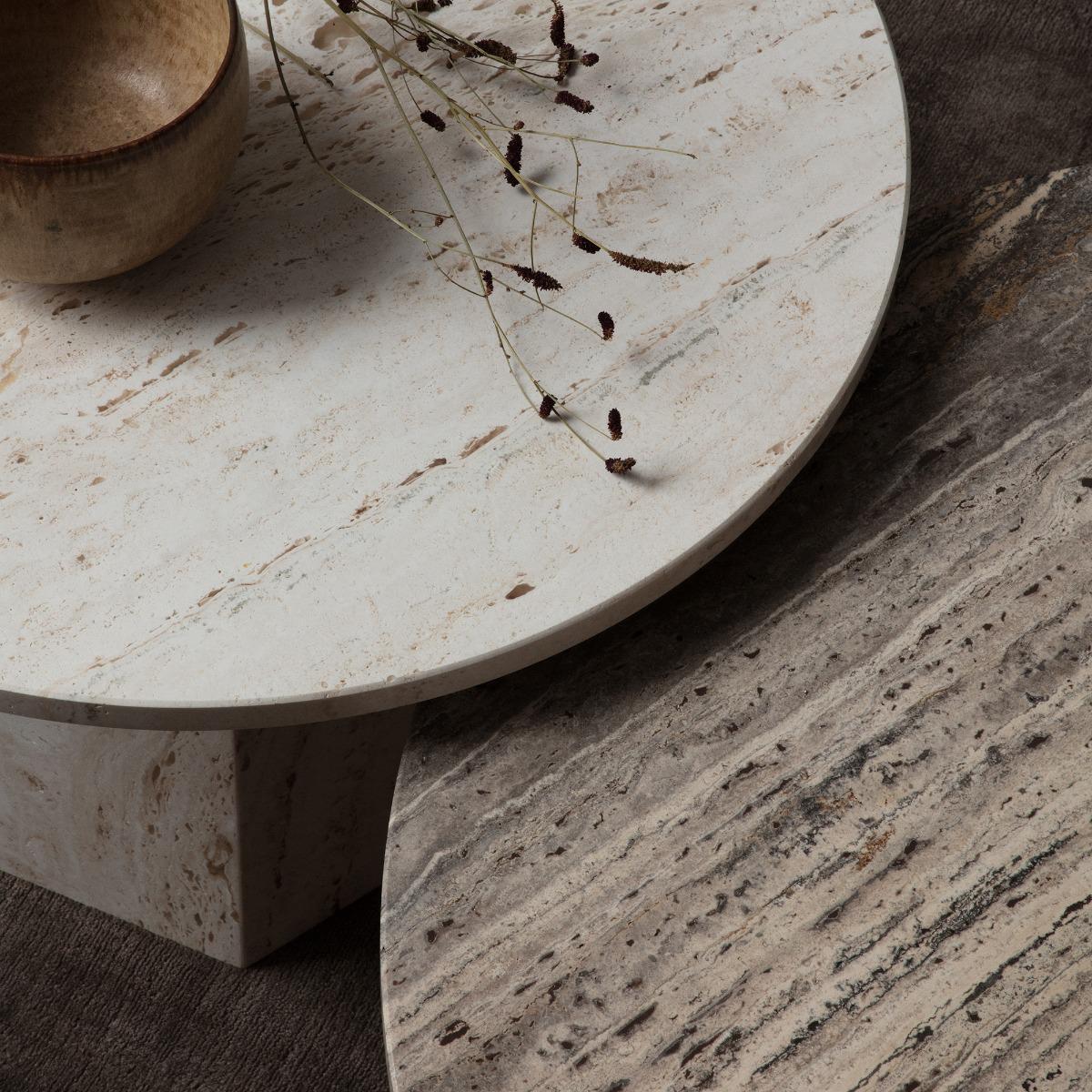 Designed by Gam. Fratesi, The Epic Coffee Table is a sculptural form inspired by Greek columns and Roman architecture,brought to life by Copenhagen-based manufacturer GUBI. Named for the epic poems of ancient times, the table displays the natural beauty of travertine stone, highlighting its veins and texture. Combining two simple geometric shapes, the monolithic form references classical columns. As noted by Danish-Italian design duo Gam. Fratesi, "Without material there is no soul. Positioning the material at the centre of the project is an intellectual act and celebrating unusual stones and natural finishes is aligned with our practice and GUBI’s cerebral and contemporary take on the traditional. ".