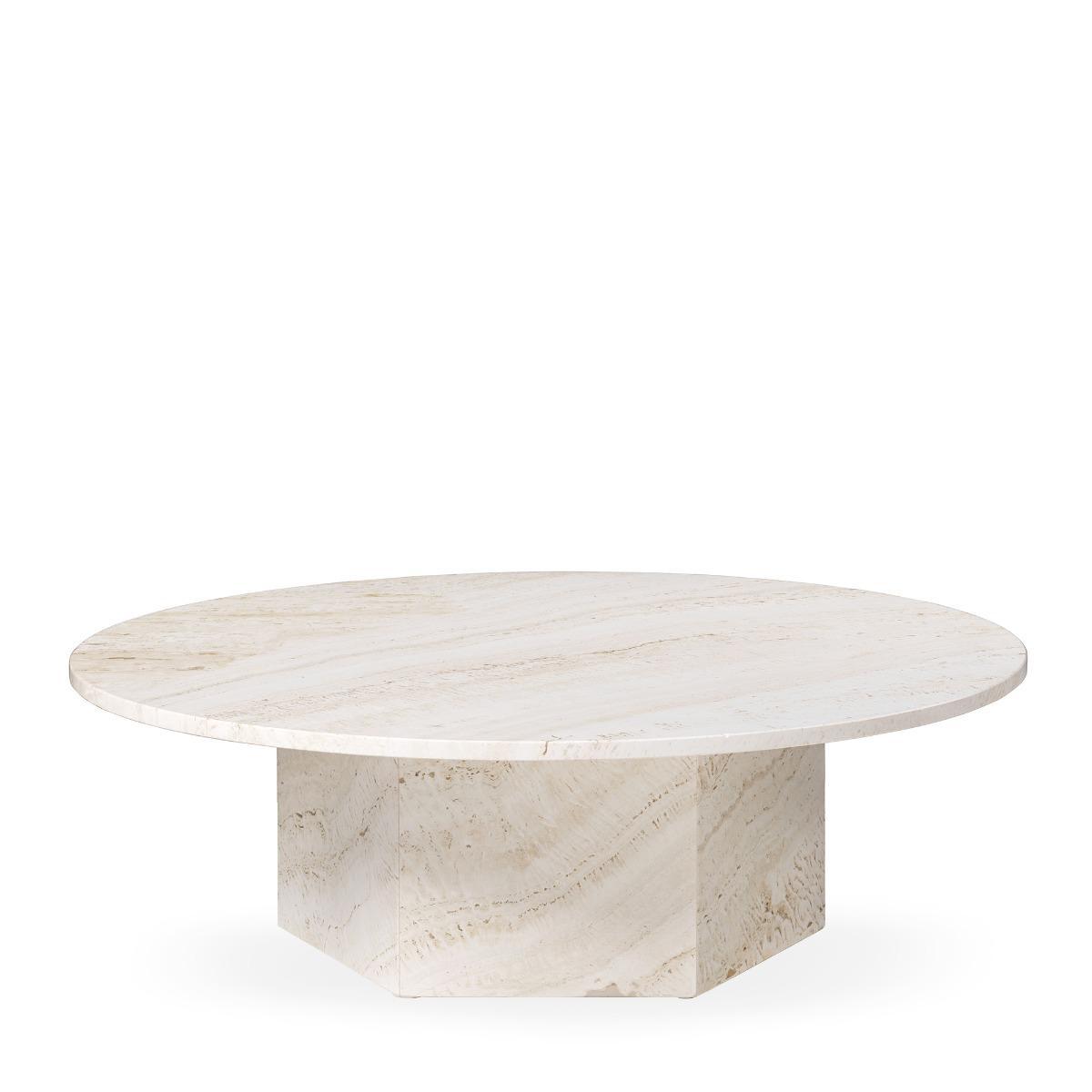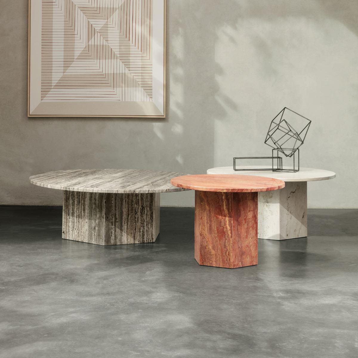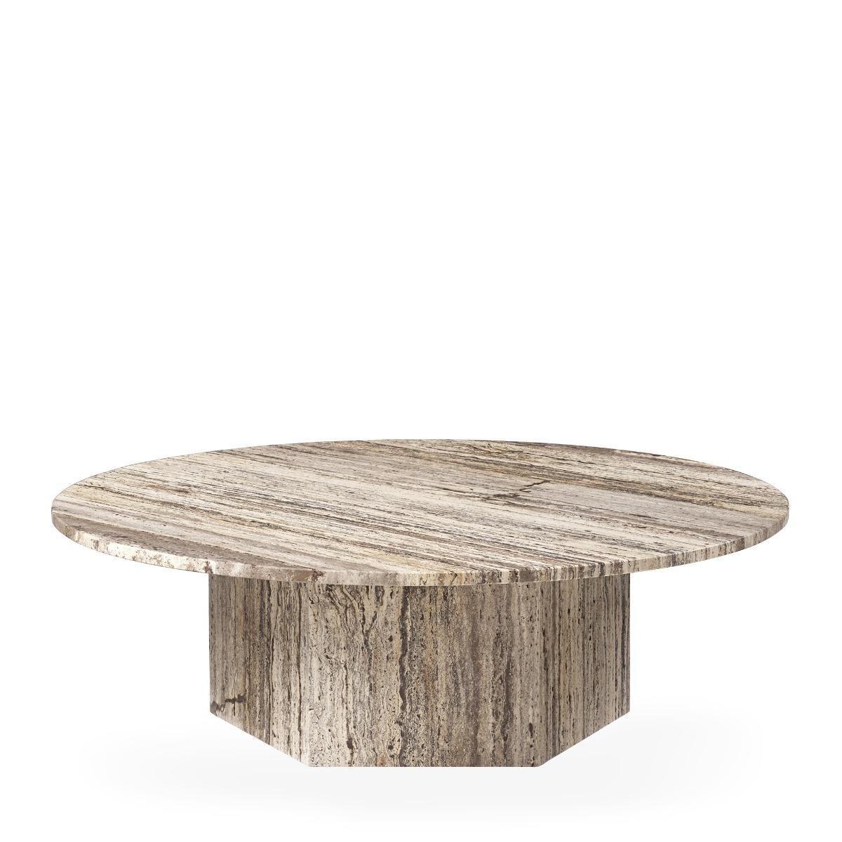 Designed by Gam. Fratesi, The Epic Coffee Table is a sculptural form inspired by Greek columns and Roman architecture,brought to life by Copenhagen-based manufacturer GUBI. Named for the epic poems of ancient times, the table displays the natural beauty of travertine stone, highlighting its veins and texture. Combining two simple geometric shapes, the monolithic form references classical columns. As noted by Danish-Italian design duo Gam. Fratesi, "Without material there is no soul. Positioning the material at the centre of the project is an intellectual act and celebrating unusual stones and natural finishes is aligned with our practice and GUBI’s cerebral and contemporary take on the traditional. ".