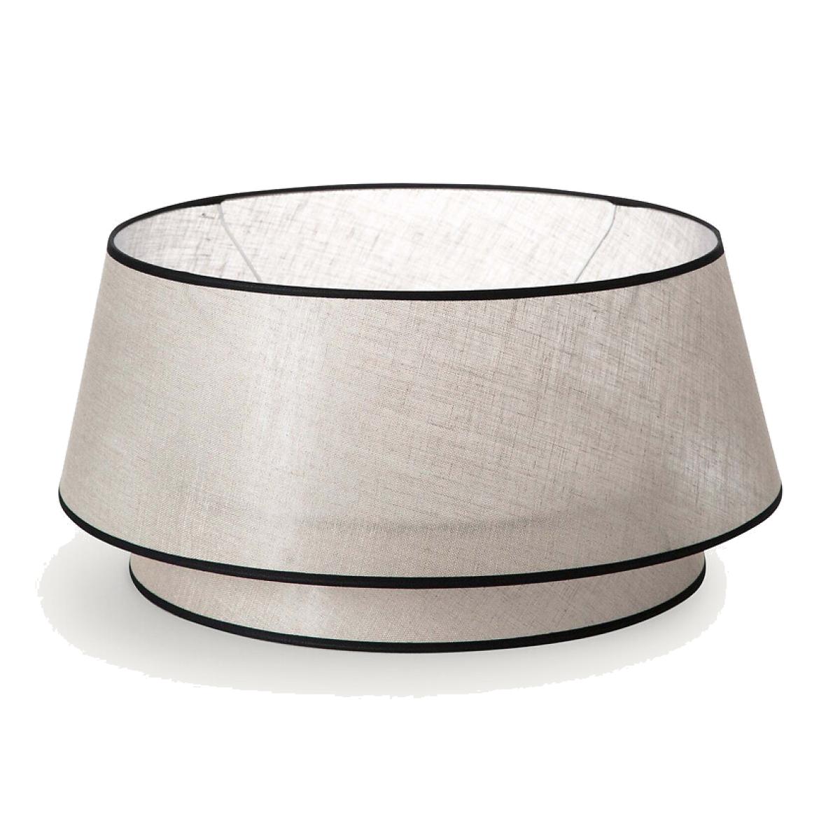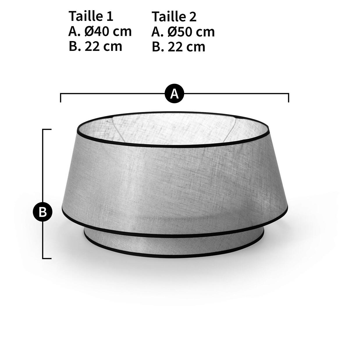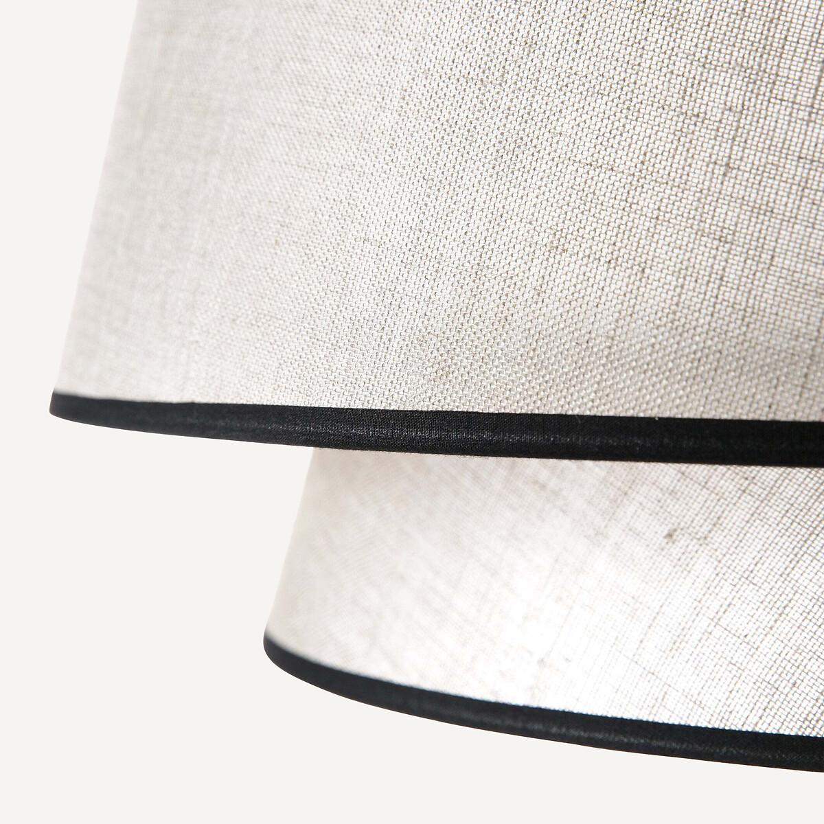 Our popular Epilogon lampshade has been reworked in pure linen, giving a gentle, diffused light and stylish silhouette. Featuring two stacked cylinders covered with linen in a neutral tone, the shade is finished with metallic edging, for extra strength and quality. Product Details • Steel frame with white epoxy finish • Canvas 100% linen • Black braided finish • Supports E27 bulb (not supplied) • Non-electrified. Dimensions • Diameter 40 x H22cm • Diameter 50 x H24cm • Made in France.