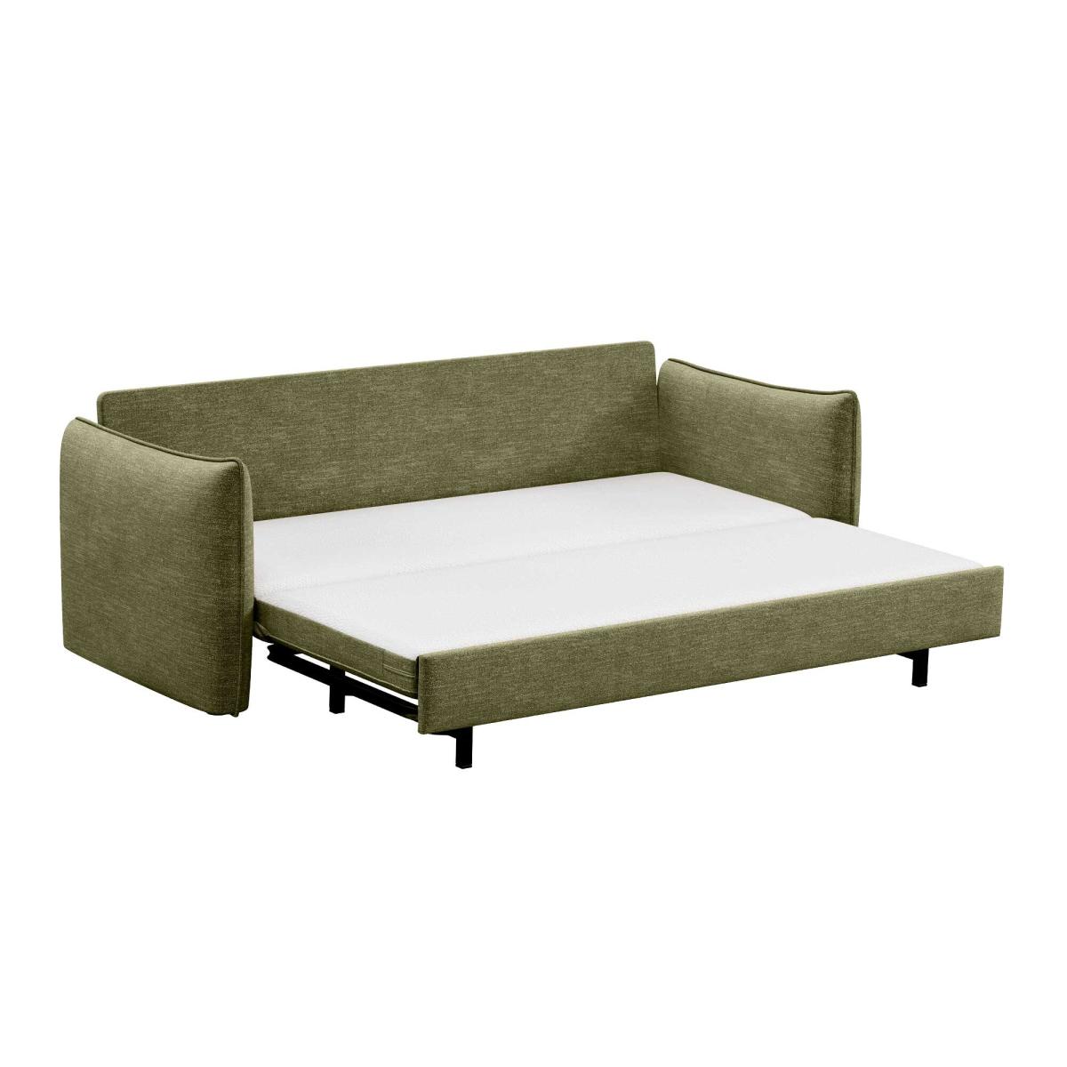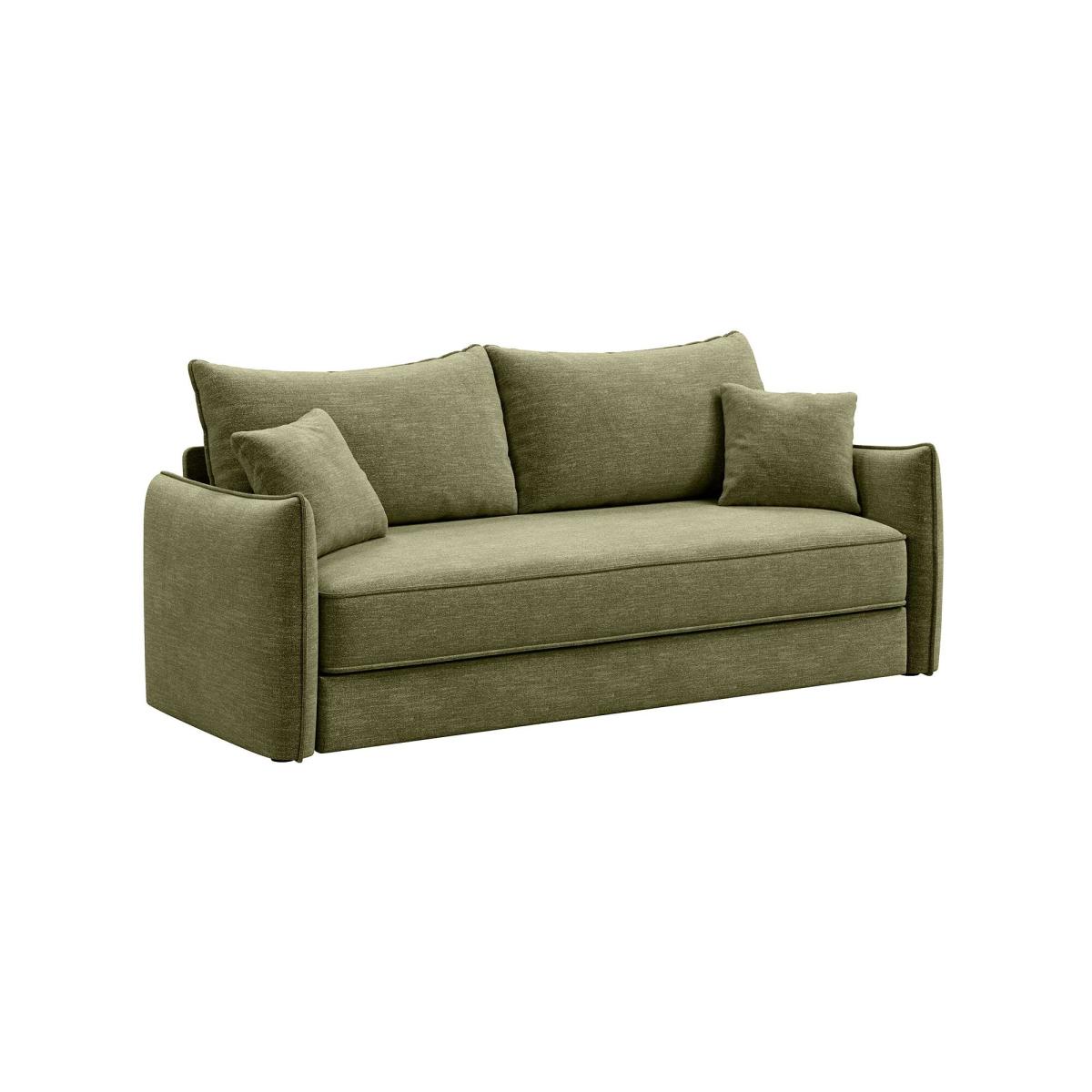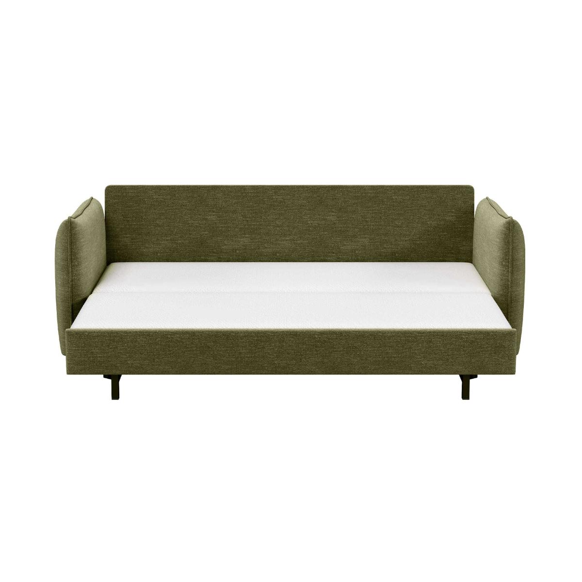 I love this sofa bed for its clean, unpretentious design and versatile colour, making it adaptable to a range of interiors, from traditional to contemporary. It’s a practical choice for those who need a stylish solution that doubles as a place to sit and one to sleep, without sacrificing comfort. When styling, consider adding textured cushions or throws in contrasting colours or patterns to create visual interest - the neutral green provides a great base. It works particularly well in open-plan living spaces, guest rooms, or smaller apartments, where practicality and style need to go hand in hand. For a more polished look, pair with minimalist furnishings, or soften the space with layered textiles and warm lighting.
