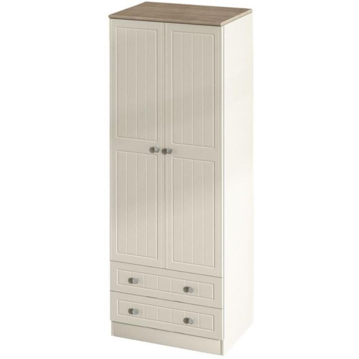 Designed with todays lifestyle in mind the stunning Epworth 2ft 6in 2 Drawer Robe has combined elements of the timeless shaker style design with clean lines and neutral colours creating a truly beautiful robe. With a variety of pieces in the Epworth range you will be able to select a variety of pieces that best suit you and your home. Choose from 2 beautiful finishes (Cream Ash with Bordeaux Oak Top & Kaschmir Ash with Bordeaux Oak Top) all complimented with quality brushed steel bar handles. All Pieces will arrive ready assembled. 12 Month Guarantee. Dimensions: 182.5cm x 74cm x 53cm