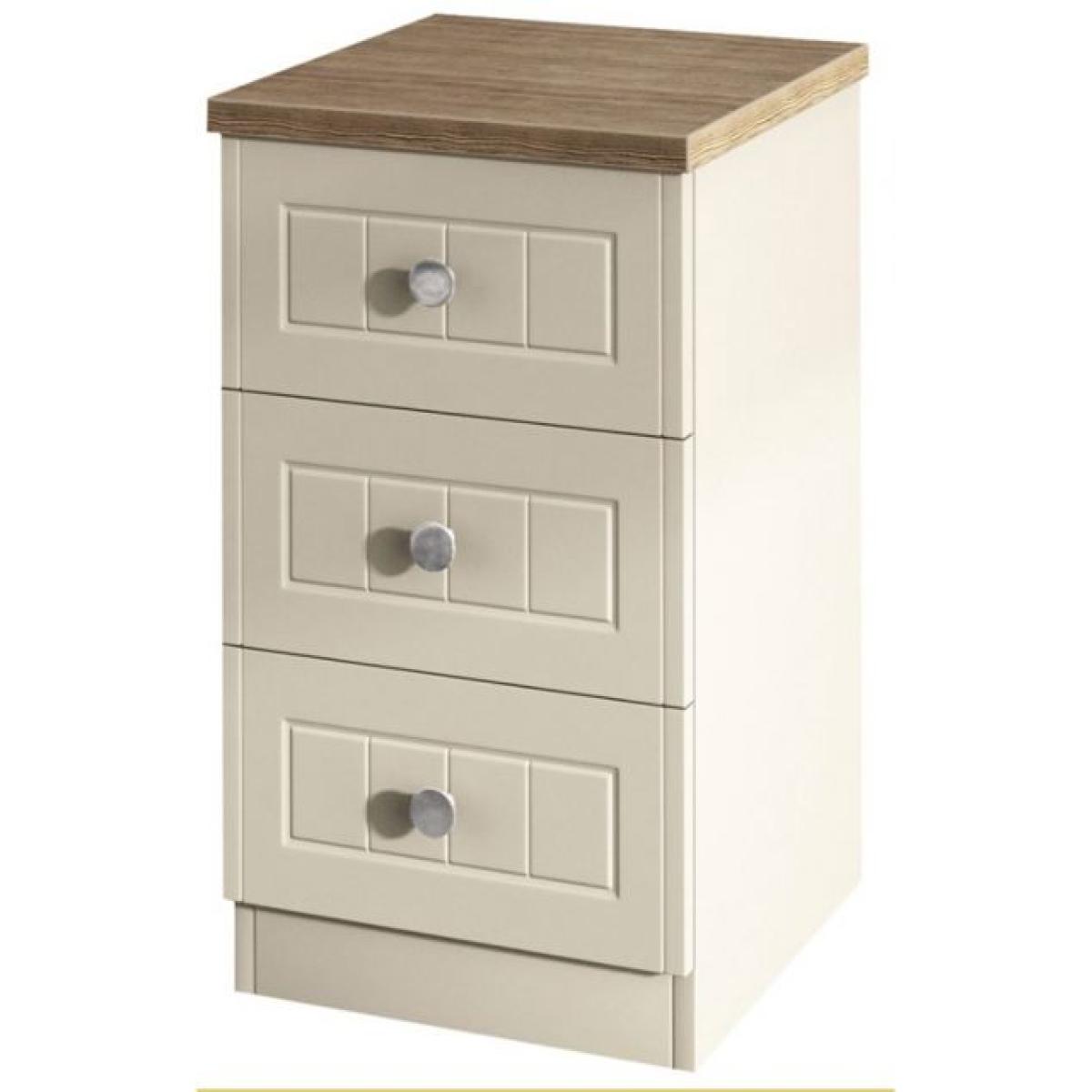 Designed with todays lifestyle in mind the stunning Epworth 3 Drawer Locker has combined elements of the timeless shaker style design with clean lines and neutral colours creating a truly beautiful locker. With a variety of pieces in the Epworth range you will be able to select a variety of pieces that best suit you and your home. Choose from 2 beautiful finishes (Cream Ash with Bordeaux Oak Top & Kaschmir Ash with Bordeaux Oak Top) all complimented with quality brushed steel bar handles. All Pieces will arrive ready assembled. 12 Month Guarantee. Dimensions: 69.5cm x 39.5cm x 41.5cm