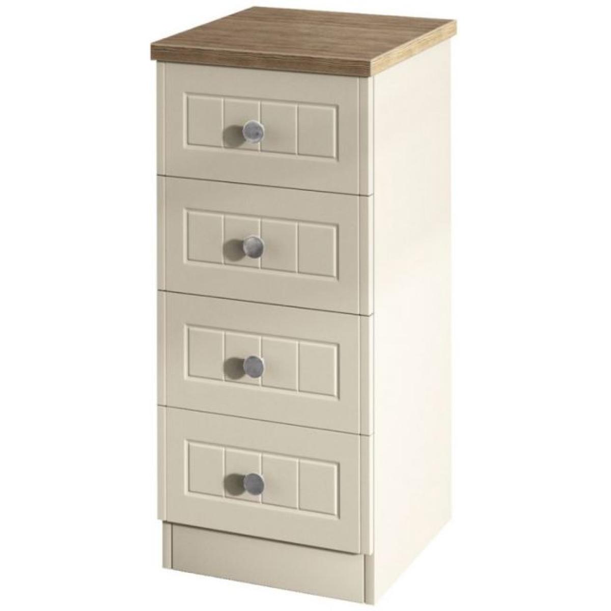I like how this slim four-drawer unit slots easily into tight spaces and delivers useful storage without bulk. The neutral cream finish with a wood-effect top suits classic, country-style or Scandi interiors, and the simple panel detail keeps the look understated. For styling, keep the surface clear - perhaps a small plant and a tray for essentials if it’s in a hallway, or a slender lamp on top in a bedroom. In a bathroom you can fold hand towels inside and add a woven basket beside it. This versatile piece works just as well in modern or traditional schemes.