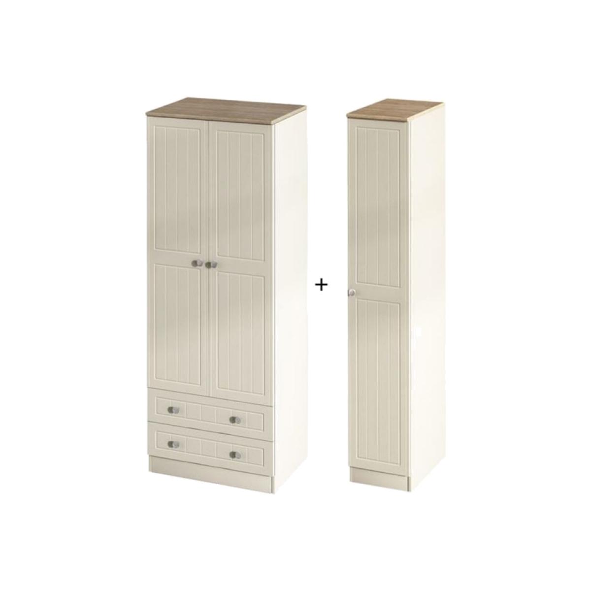Designed with todays lifestyle in mind the stunning Epworth Tall Triple Plain Robe has combined elements of the timeless shaker style design with clean lines and neutral colours creating a truly beautiful robe. With a variety of pieces in the Epworth range you will be able to select a variety of pieces that best suit you and your home. Choose from 2 beautiful finishes (Cream Ash with Bordeaux Oak Top & Kaschmir Ash with Bordeaux Oak Top) all complimented with quality brushed steel bar handles. All Pieces will arrive ready assembled. 12 Month Guarantee. Dimensions: 197cm x 111cm x 53cm